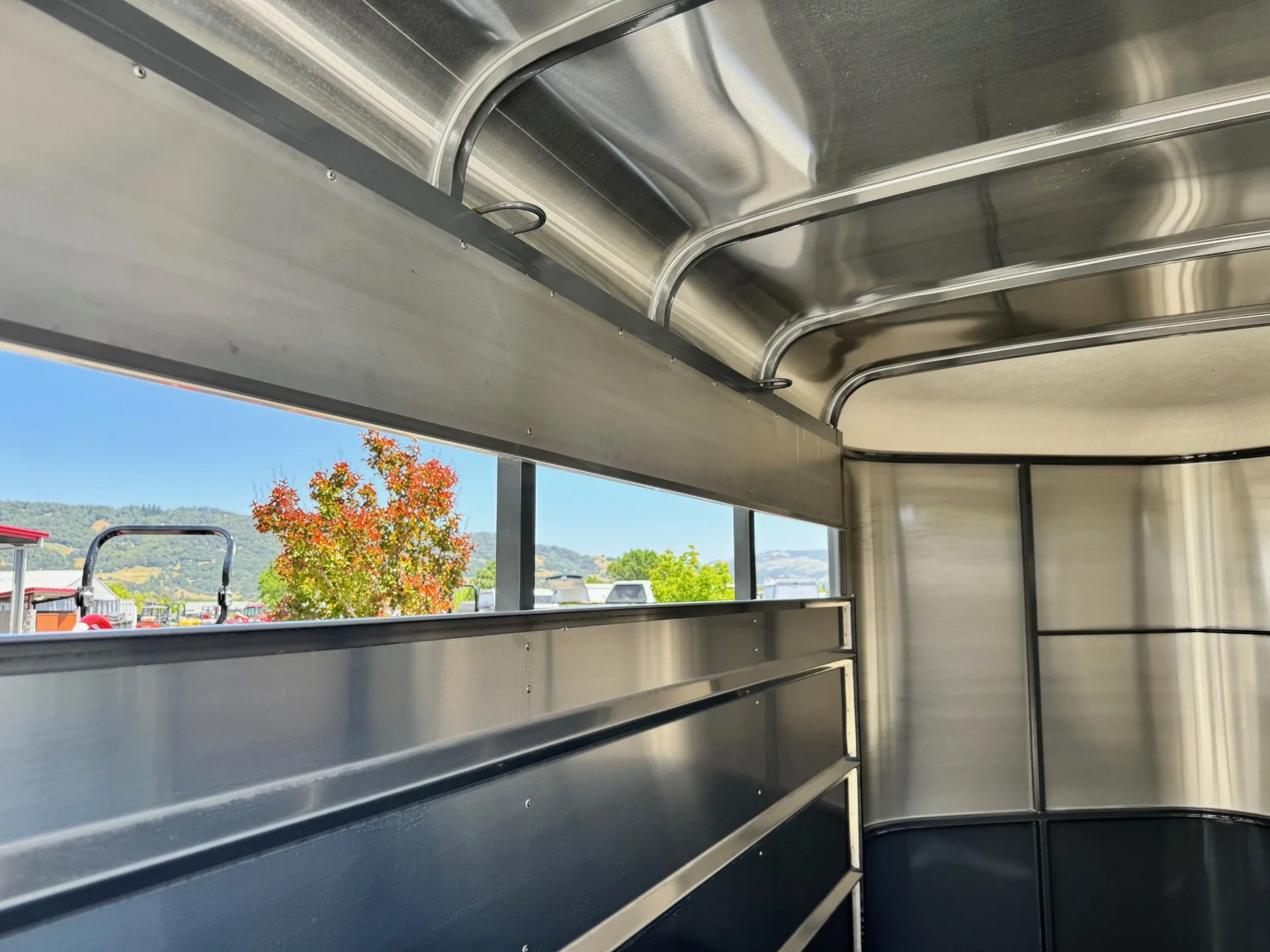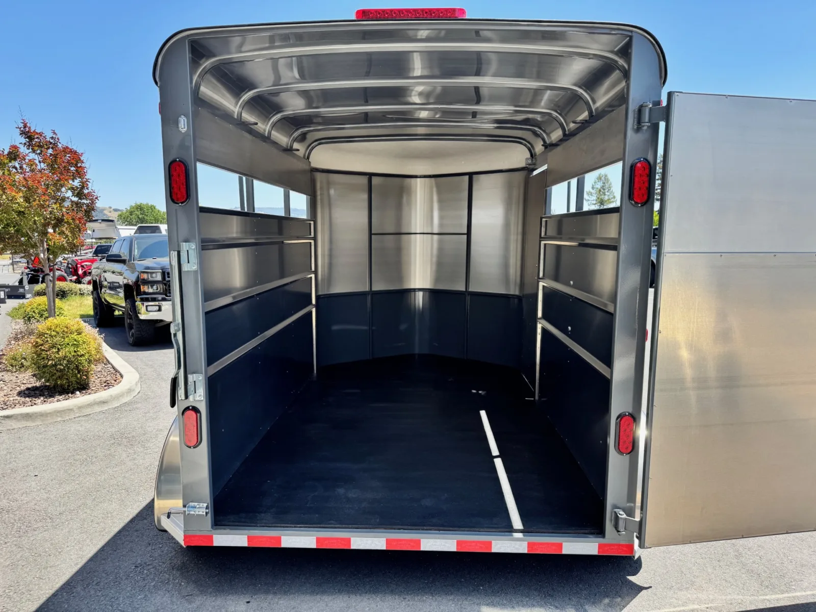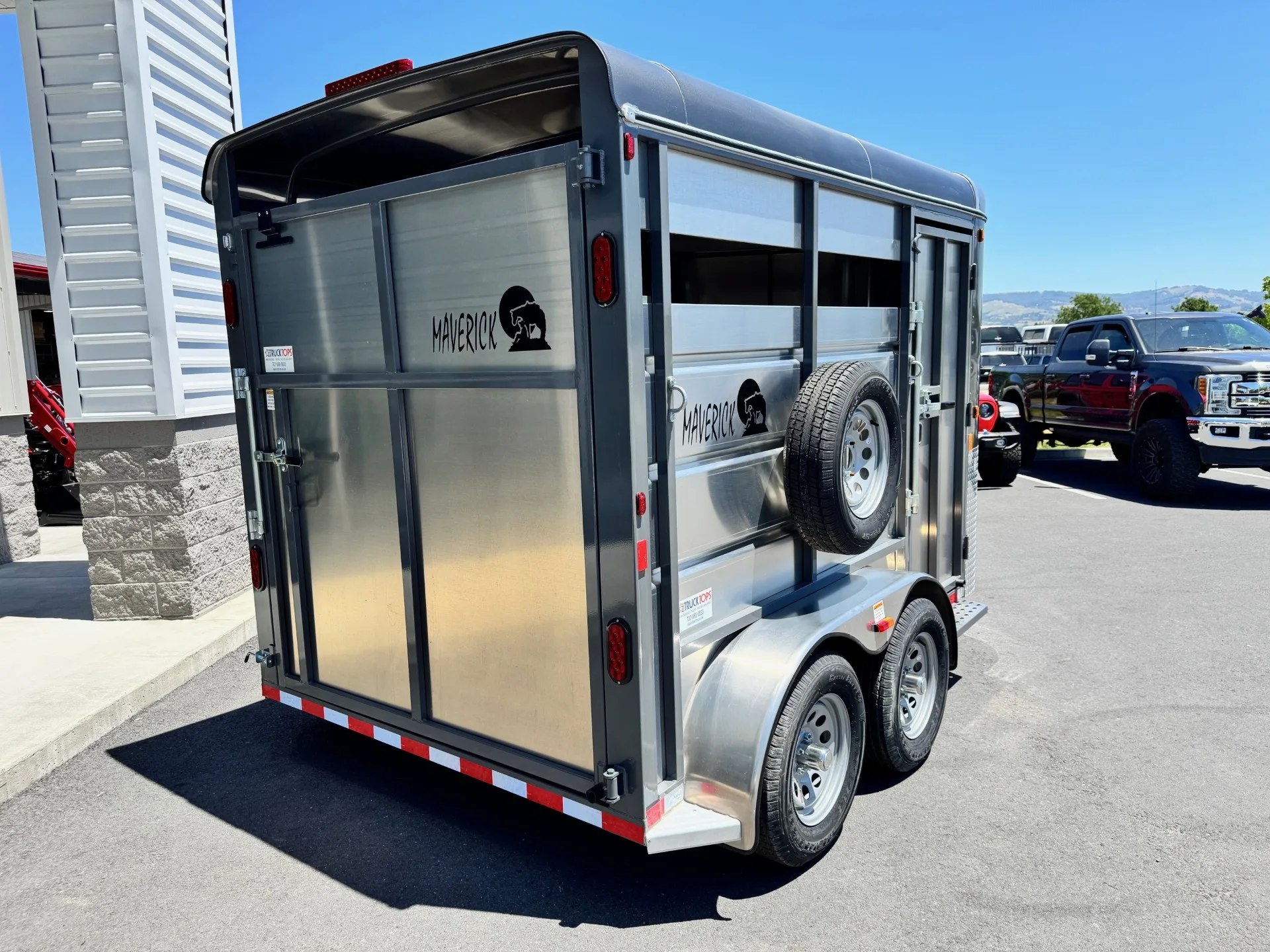 The Maverick Bumper Pull Steel Stock Trailer offers rugged reliability in 12′, 14′, and 17′ lengths with a 6’6″ width and 7′ height. Built with aluminum fenders, roof, and gravel guard, it features 3500# axles, electric brakes, and a Demco EZ Latch coupler. Inside, rubber floor mats, interior lighting, and a center gate (14’/17′) provide function and durability for livestock transport. With optional upgrades like a hay rack, saddle rack kit, or combo slider gate, it’s ready to handle any job.
