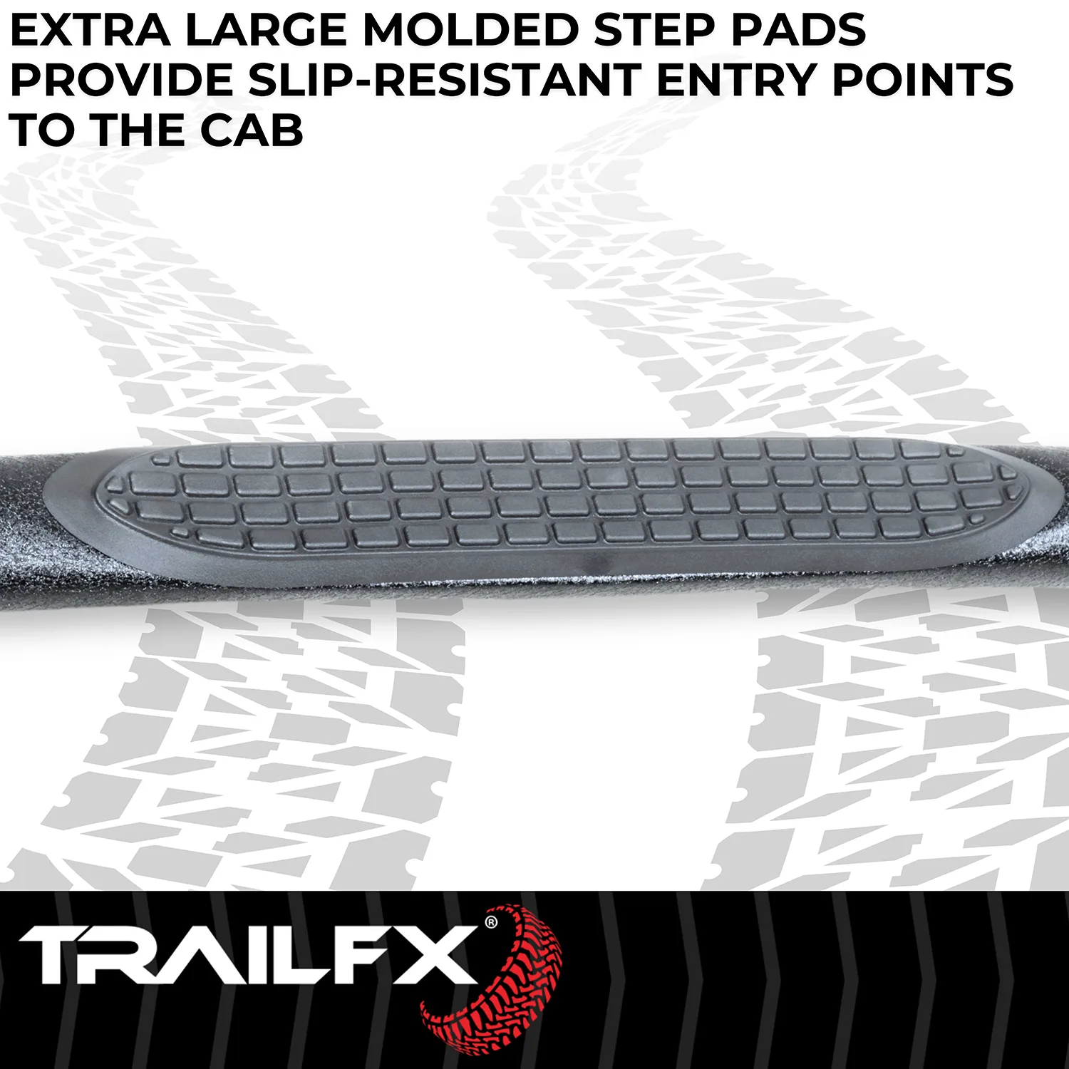 Trail FX TFX Round Tube Side Steps 3 Inch Round Bent Textured Black Steel Without End Caps Frame Body Mount Bolts