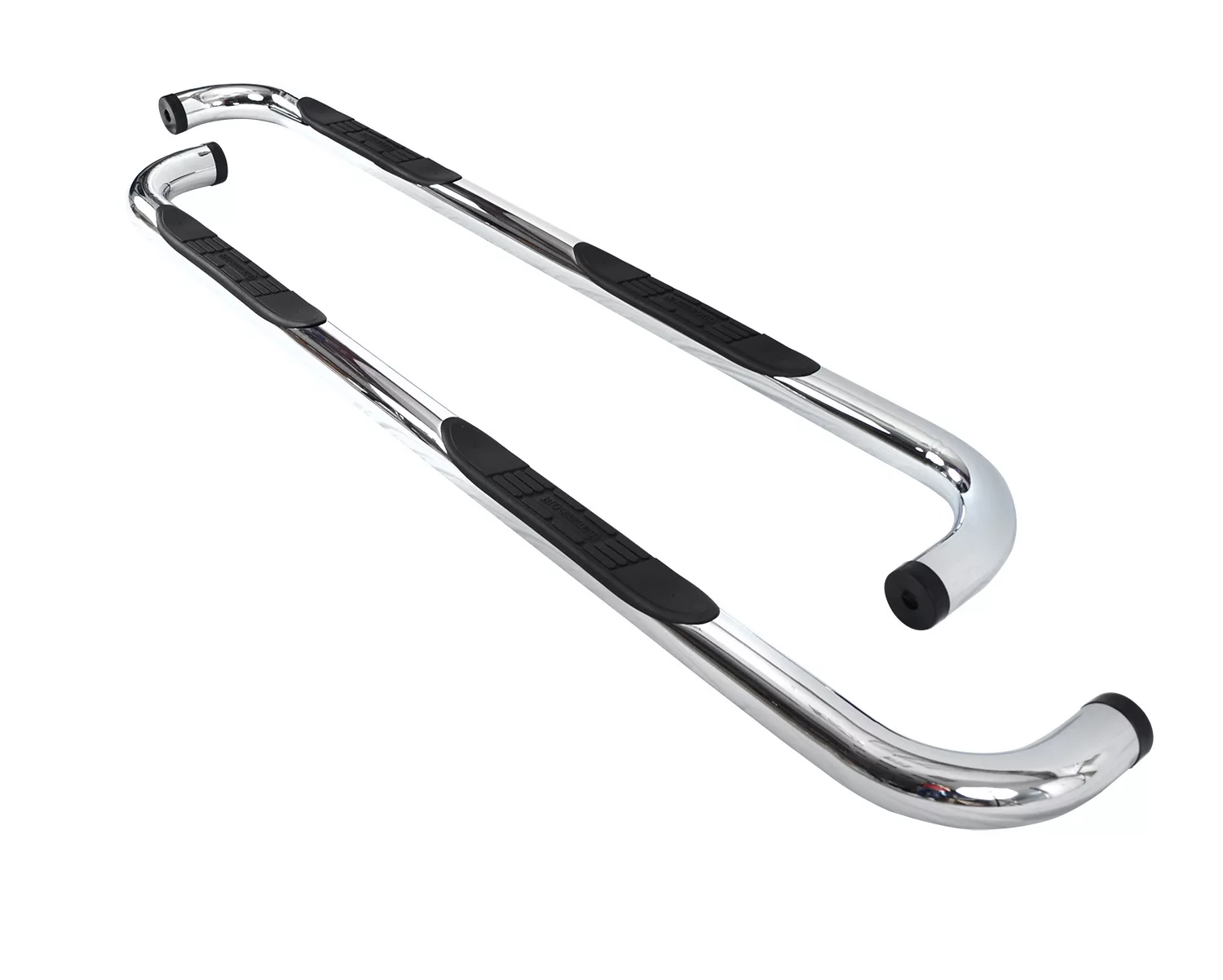 The 4000 Series Side Steps are a pair of classic 3″ round tube steps with a 90° bend at each end. High-traction composite step pads makes entering and exiting a truck or SUV safe and easy. Installation is simple with no cutting or drilling required on most vehicles. Vehicle-specific mounting brackets are included.