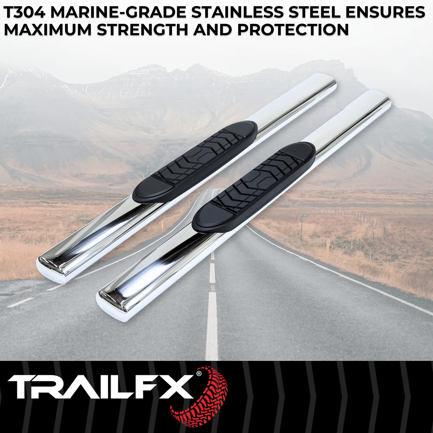 Trail FX TFX 5″ Oval Straight Side Bars 5 Inch Oval Straight Pol Stainless Steel Rocker Panel Mount