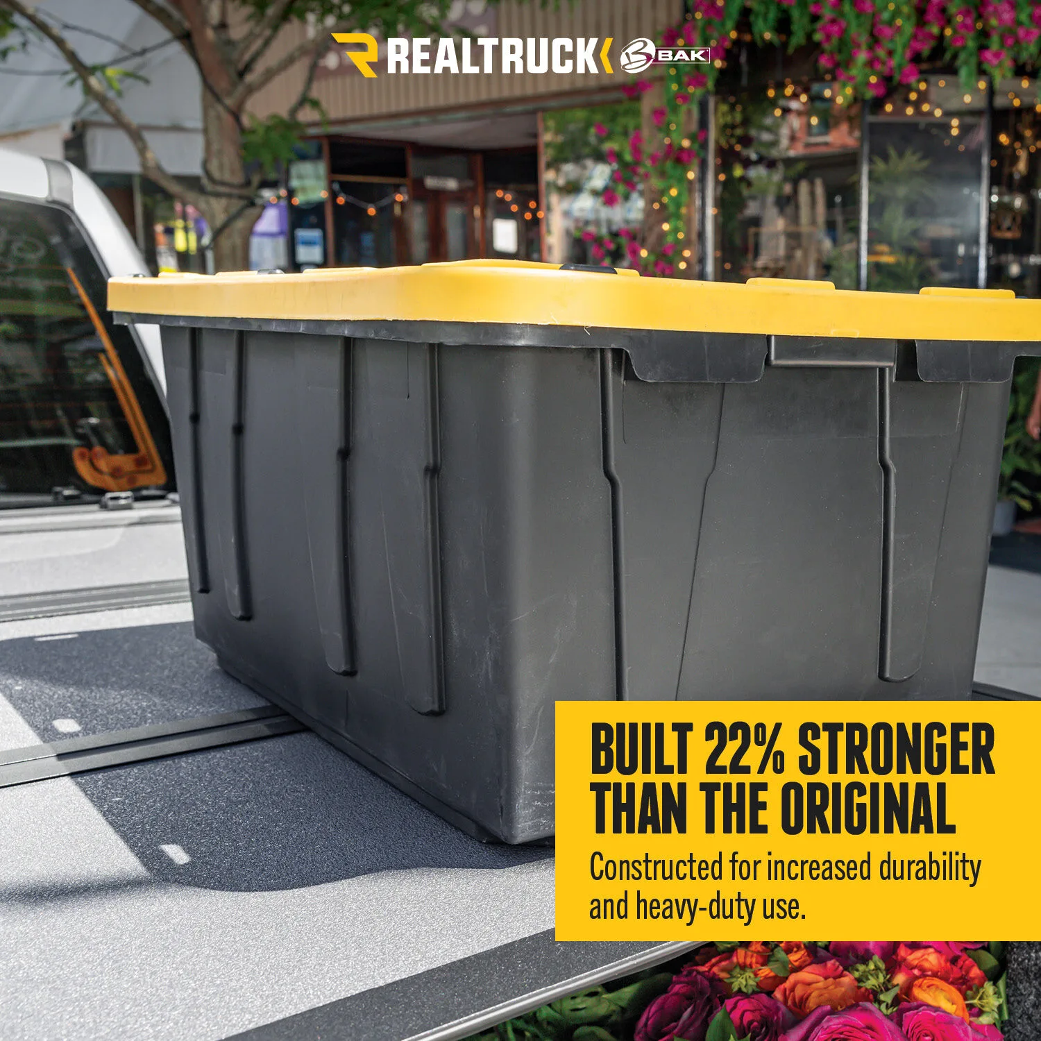 The best-selling truck bed cover in the world just got better. Introducing the new and improved RealTruck BAKFlip ® MX4 (GEN 3)—an evolution of RealTruck’s most popular tonneau cover. This next-generation upgrade builds on everything truck owners already love about MX4, now enhanced with improved functionality, greater durability, and elevated security. The new and improved BAKFlip MX4 is constructed primar ily from alloy materials, including heavy-duty aluminum top panels and side rails. Reinforced with high-density polymer cores, each panel delivers a 22 percent increase in overall strength compared to the original model. Security is also enhanced. In addition to BAK’s patented auto-latching system, which automatically secures the cover when closed, the BAKFlip MX4 (GEN 3) features re-engineered lock components for improved resistance to forced entry compared to the GEN 2. No matter the cargo you’re transporting, you can rest assured knowing your gear’s protected. When the weather turns, the BAKFlip MX4 (GEN 3) holds strong. Revised EPDM rubber perimeter seals and tight-fit clamps provide our best seal yet, preventing seepage between the bed cover and bed rails. At the rear of the cover, a 13 percent longer dual-action tailgate seal provides weather protection for the tailgate. This inn ovative design also improves operation, maintaining factory tailgate functionality regardless of the cover’s position. The BAKFlip MX4 isn’t only durable, it’s also sleek and stylish. Unlike competitors, the BAKFlip MX4 sits flush with your pickup’s bed rails, practically disappearing into your tru ck’s profile. And with a sleek, textured matte black finish across all surfaces, the MX4 looks great whether open or closed.