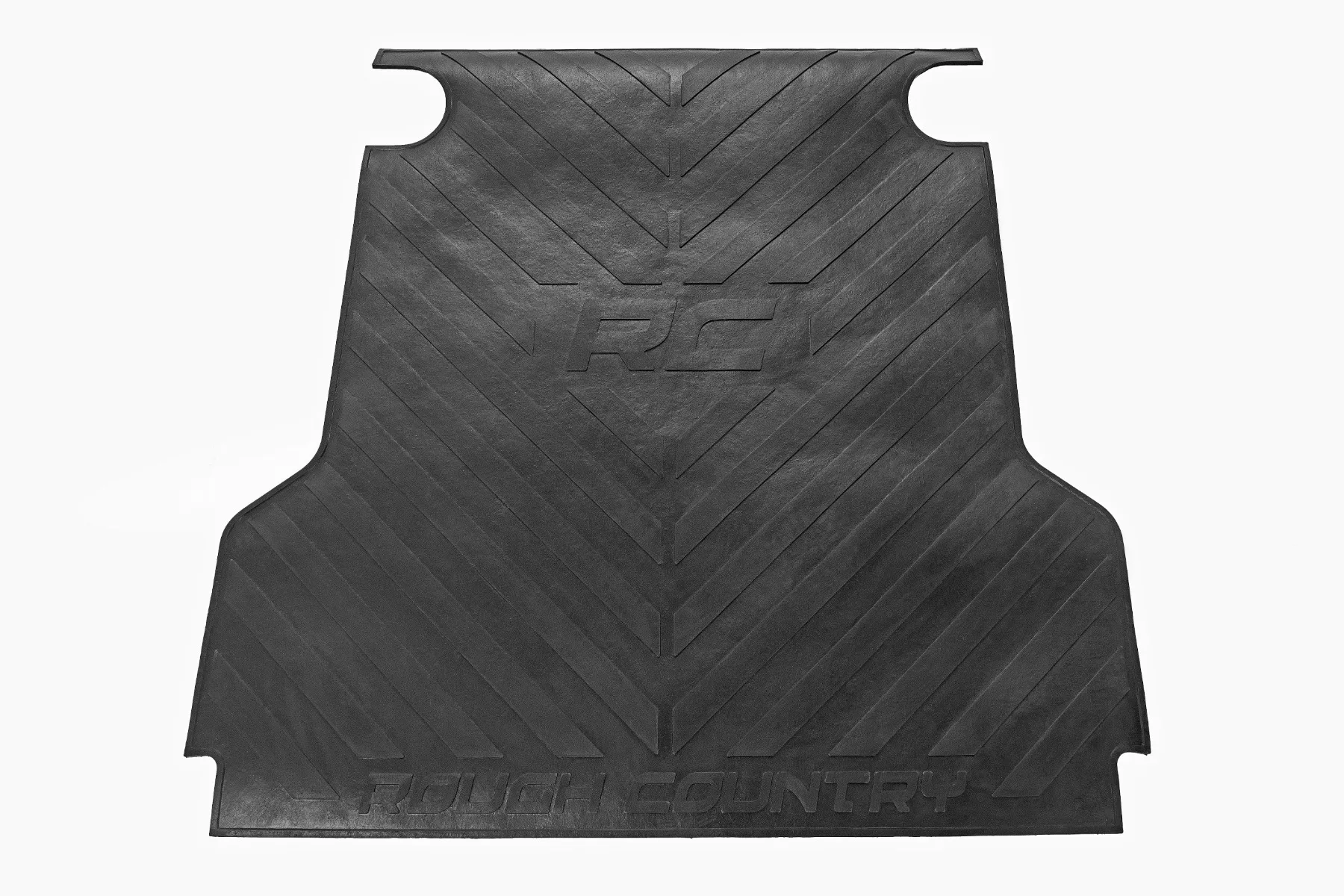 Innovative Design and Material. Keep your truck bed free from scuffs, scrapes, and scratches with Rough Country Truck Bed Mats. These heavy-duty, 3/8-inch thick, contoured rubber mats are nearly indestructible made from a high-quality rubber compound that won t crack in extreme temperatures or fade when exposed to the sun. This stylized bed mat features…