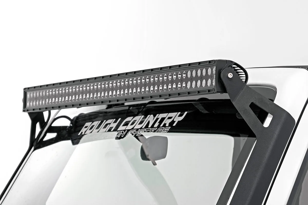 Command the Dark: Light up the night and stay on the trails longer with Rough Country’s 50-inch Dual Row CREE LED Light Bar. This powerful light bar offers 23,040 lumens of illumination and 288 watts of energy-efficient output, all housed in a stylish, modern frame. Featuring 96 high-intensity 3-watt CREE LEDs, it delivers superior brightness and durability for any adventure. The sleek black panel design complements vehicles with black accents, such as grilles, wheels, bull bars, or steps. Designed for all-weather performance, this light bar comes with a durable die-cast aluminum housing, ensuring maximum strength and heat dissipation. It s also backed by an IP67 waterproof rating, providing reliable performance even in harsh conditions. Installation is made simple with the included premium, flat-wound wiring harness, complete with an on/off switch for easy operation. The light bar also features Rough Country’s Light Bar Noise Silencers, designed to eliminate unwanted hums, whistles, and wind noise typically found in mounted LED light bars. This light bar includes both end mounts and adjustable base mounts, offering multiple mounting options for maximum versatility. A snap-on cover protects the lens, while Moisture Breather technology reduces moisture build-up inside the light. Plus, it s all backed by a 3-year warranty for peace of mind.