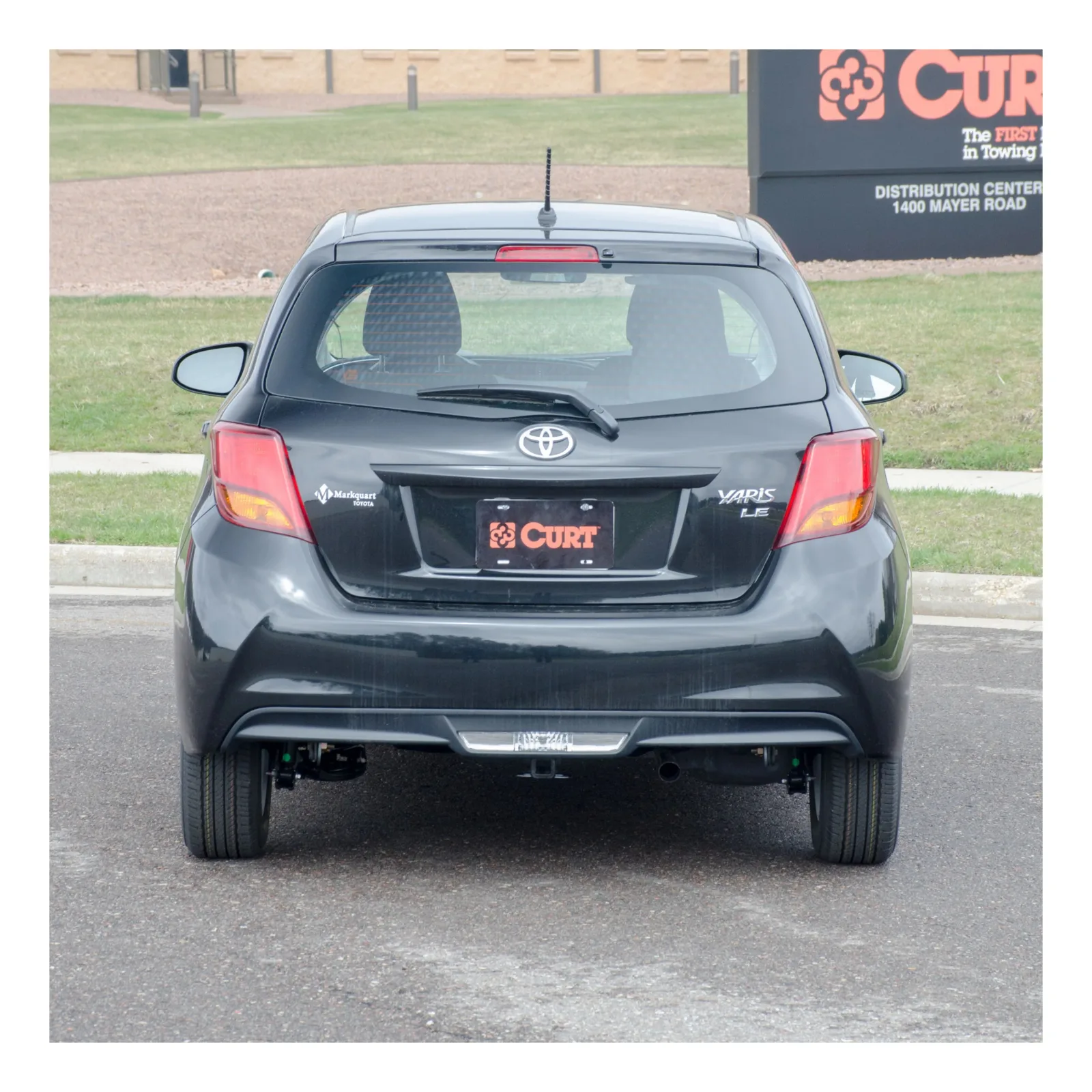 However you define adventure — whether it’s climbing onto the back of a mountain bike, hunting from the top of a tree stand or camping with the family a long way from nowhere — CURT class 1 hitches provide a light-duty towing receiver to help you Bring It. Each is made to fit a specific vehicle, providing easier installation, a better fit and optimal towing capacity. Custom class 1 trailer hitches are available for a variety of smaller vehicle types, including the compact car, crossover, minivan and small SUV. This particular class 1 hitch is designed to be a custom hitch for certain years of the Toyota Yaris (to verify vehicle compatibility, see the CURT application guide at curtmfg.com). Tested in accordance with SAE J684, it offers a weight carrying capacity of 2,000 lbs. GTW and 200 lbs. TW. It is equipped with 1-1/4″ receiver tube opening to accept a ball mount shank or other hitch mount. This class 1 hitch also comes with all necessary mounting hardware. With its lightweight design and smaller receiver tube size, a class 1 hitch is especially useful for adding cargo space with a hitch-mounted bike rack or cargo carrier. They can also typically be used to tow small trailers such as a utility trailer, kayak trailer or teardrop camper (never exceed the lowest weight capacity of any towing component; i.e. the vehicle, hitch, trailer, etc). Though CURT class 1 trailer hitches are only intended for light-duty towing, we apply the same principles of quality as we do to the rest of our rear mount hitches. Each class 1 hitch is made with hands-on engineering, high-strength steel and precise welding. We use a co-cured finish of liquid A-coat, inside and out, and durable black powder coat to provide a lasting defense against rust, chips and UV rays.