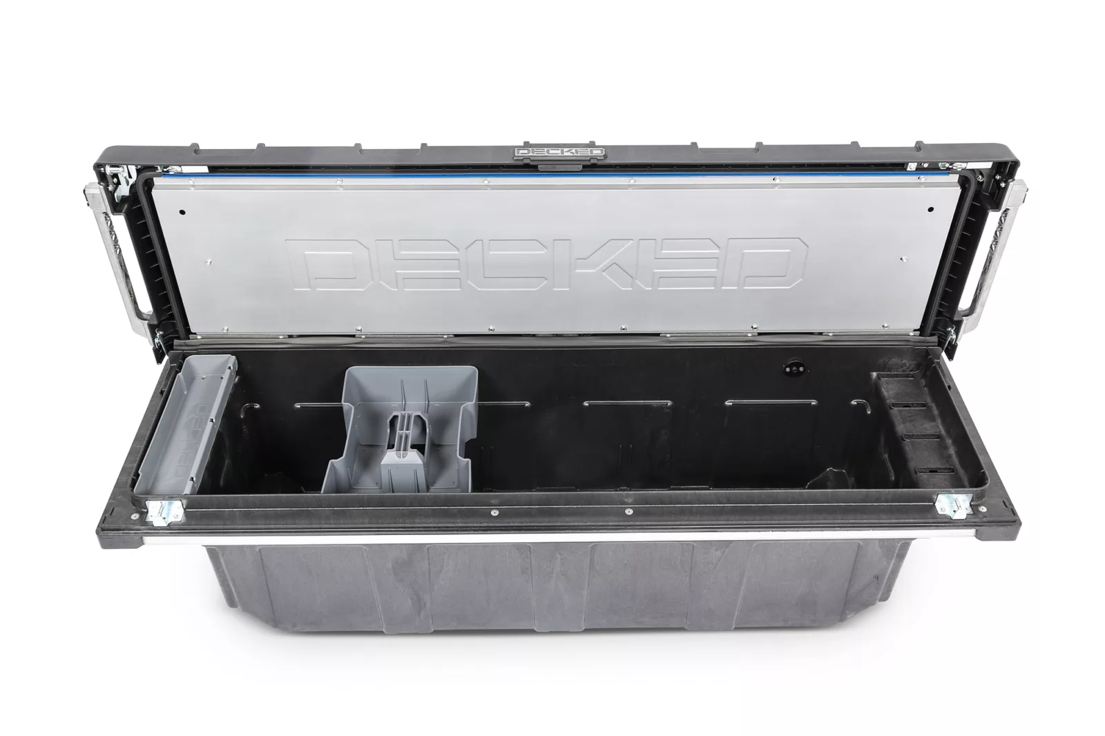 DECKED Tool Box is the only toolbox on the market that is easy to access, doesn’t ding, dent or rust, waterproof and is secure and lockable. Organize your tools and gear with a DECKED truck bed toolbox.