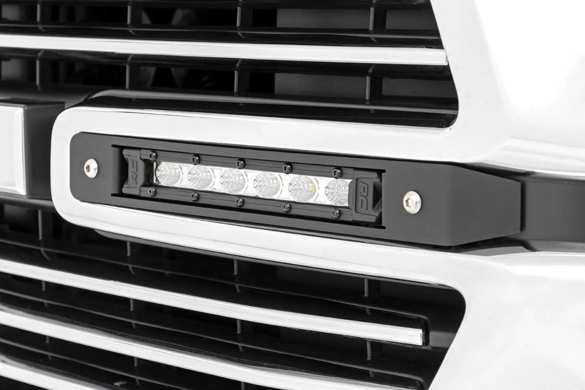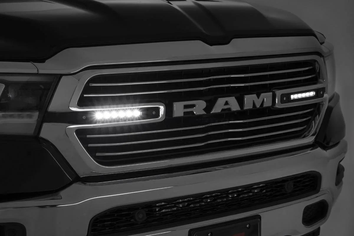 COMMAND THE DARK with Rough Country’s 6in LED Grille Kit for 5th generation RAM 1500. This sleek, recessed LED kit fits into the two slots in the factory grille, providing the perfect location for forward-facing LED power. Rough Country’s 6in LED Grille Kit fits in so well it looks like a factory upgrade! Despite the tiny size, this powerful, dual 6in LED setup provides a jaw-dropping 2,880 lumens of lighting power with a 90-degree flood beam, enough to light up the trail ahead and then some! Each LED features a die cast aluminum housing and IP67 waterproof rating, so it s sure to withstand the elements each and every time. Upgrade your RAM 1500 with Rough Country’s 6in LED Grille Kit today and release your Truck’s true potential!
