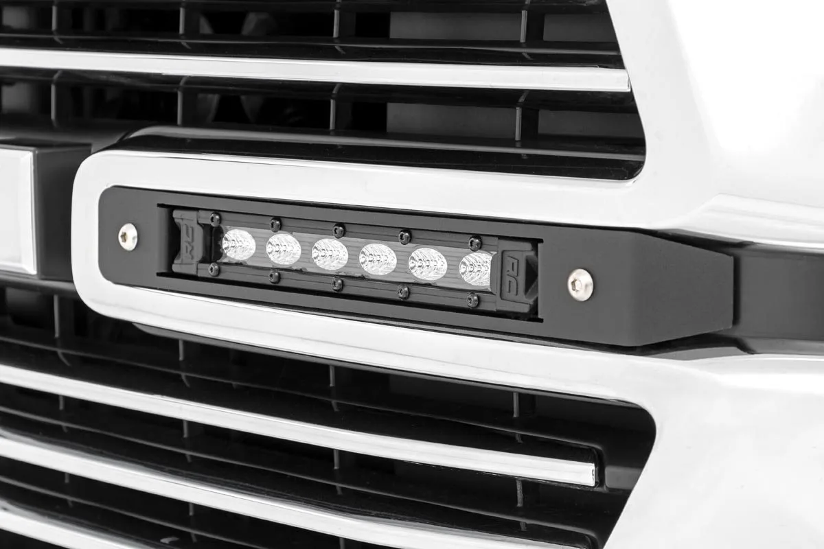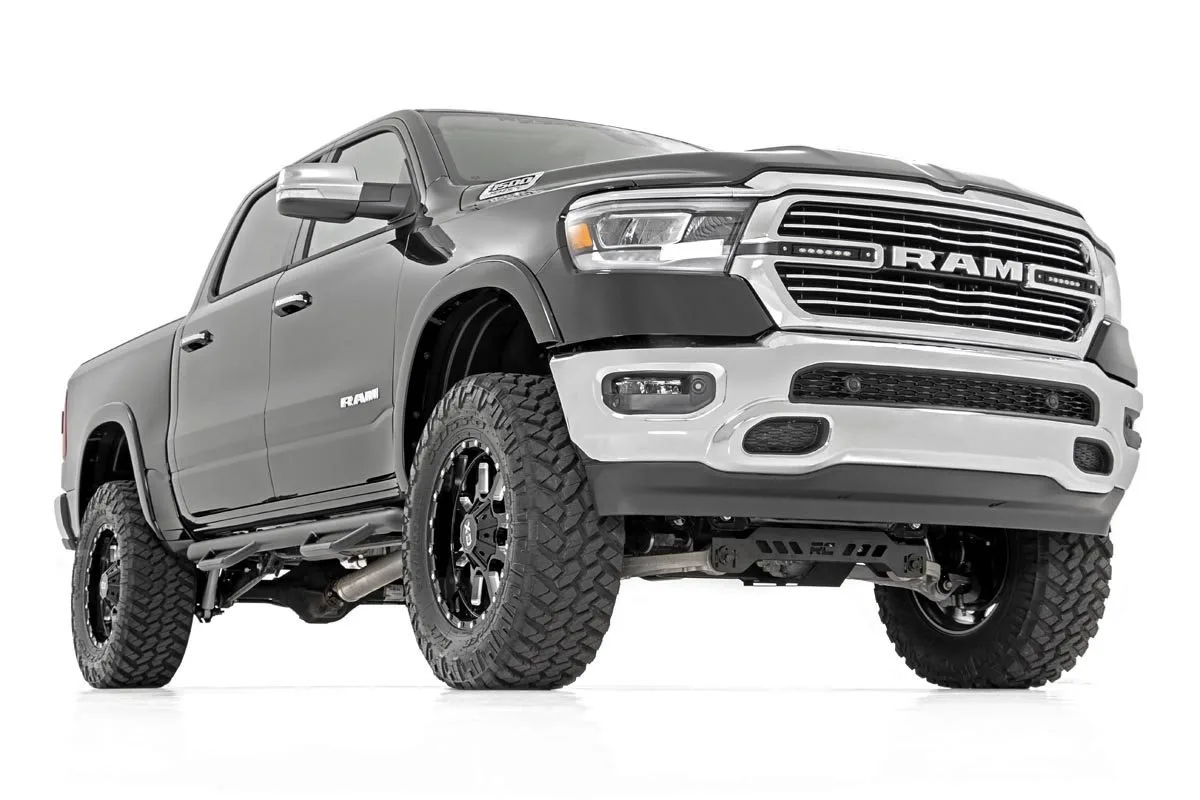 COMMAND THE DARK with Rough Country’s 6in LED Grille Kit for 5th generation RAM 1500. This sleek, recessed LED kit fits into the two slots in the factory grille, providing the perfect location for forward-facing LED power. Rough Country’s 6in LED Grille Kit fits in so well it looks like a factory upgrade! Despite the tiny size, this powerful, dual 6in LED setup provides a jaw-dropping 2,880 lumens of lighting power with a 90-degree flood beam, enough to light up the trail ahead and then some! Each LED features a die cast aluminum housing and IP67 waterproof rating, so it s sure to withstand the elements each and every time. Upgrade your RAM 1500 with Rough Country’s 6in LED Grille Kit today and release your Truck’s true potential!
