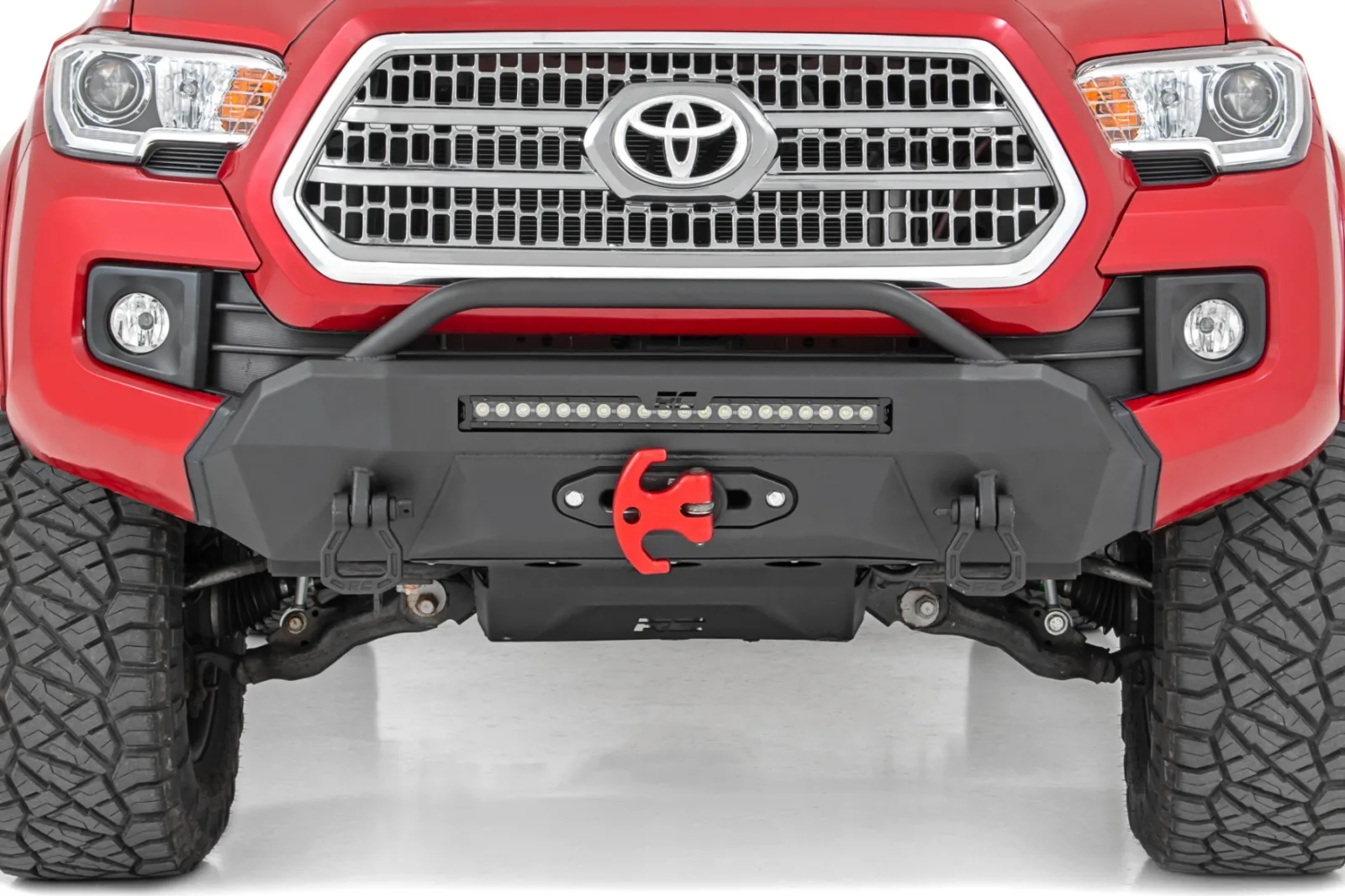 Unique Design and Stylish Appearance! Give your Tacoma’s front-end a unique look Rough Country’s Hybrid Bumper Kit. These modular bumper kits ship in a variety of options giving you the opportunity to build your own bumper! Featuring stylish good looks this bumper is sure to set you apart from the pack. Modular Design. Rough Country’s High Clearance Bumper Kit is modular, letting you pick and choose the options you prefer. Spanning the line of our high-quality black series LED light bars and winches, YOU can decide the combination that best suits your needs! Boasting an impressive 7200 lumens of impressive lighting power you’re sure to see the trails on your next outing. Each bumper features a durable steel construction and accentuates the factory lines of the Tacoma providing stunning good looks and functionality! Installation. Requiring drilling and trimming, an estimated timeframe of 8-10 hours is suggested to complete the installation process. With the included step-by-step instructions this high-quality unit can be assembled installed at home! Limited Lifetime Replacement Warranty. Rough Country’s Hybrid Bumper Kit is backed with a limited lifetime replacement warranty towards manufacturer defects. As such, the product is protected from structural and workmanship damage after the date of purchase. With our industry-leading warranty give yourself peace of mind when using Rough Country’s Suspension products!