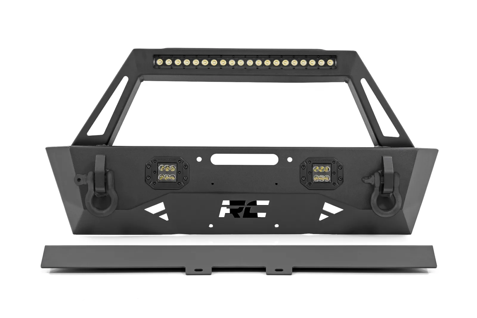Rough Country’s Jeep Stubby Front Trail Bumper is the ultimate combination of form and function, giving you an arsenal of off-road tools while giving your Jeep a mean, aggressive appearance. The stubby design offers fantastic clearance for better approach angles while a protective skid plate ensures unbeatable protection in off-road environments. Featuring a set of Rough Country’s black-series 2in flush-mount LED cubes and 20in single-row light bar, this bumper offers plenty of forward-facing illumination to help you light up the trail ahead. Each bumper also features a set of D-ring shackles for a convenient recovery point, as well as a winch plate allowing you to install any standard-sized winch. Rough Country’s Jeep Stubby Trail Bumper is engineered with a durable, steel construction and powder coated flat black for a long lifespan of corrosion resistance and great looks.