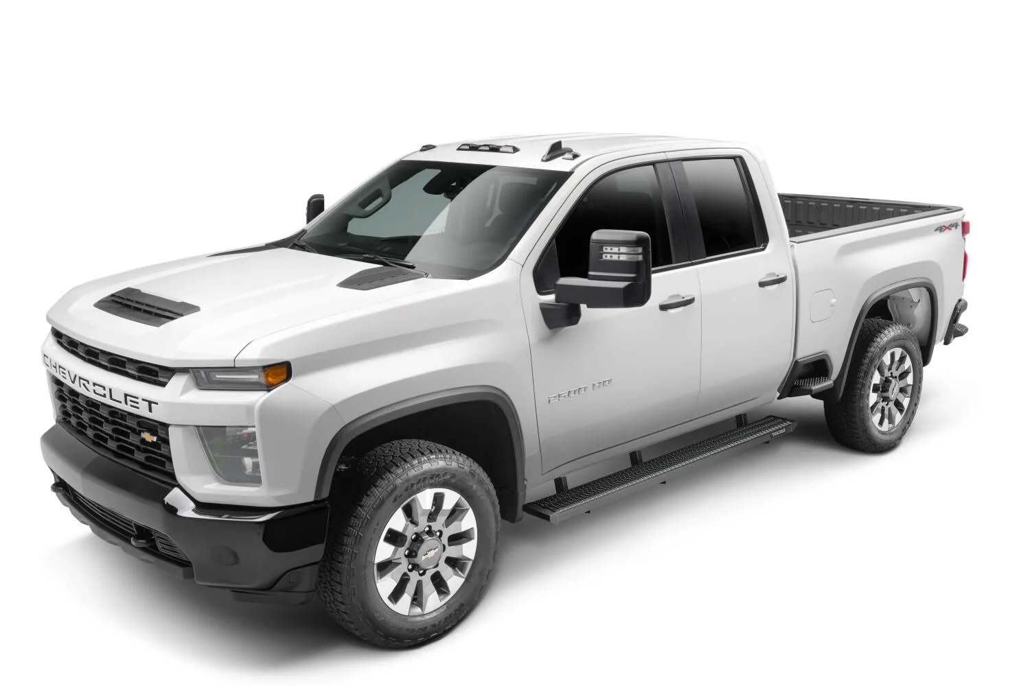 The Growler running board provides a clean yet aggressive look your vehicle. The Sure Grip tread design allows for ultimate traction in any condition. All aluminum construction with modular steel brackets offers long lasting durability and strength for all of your vehicle needs. Bolt-on brackets make installation quick and easy. This is a convenient option for work truck and fleet solutions.
