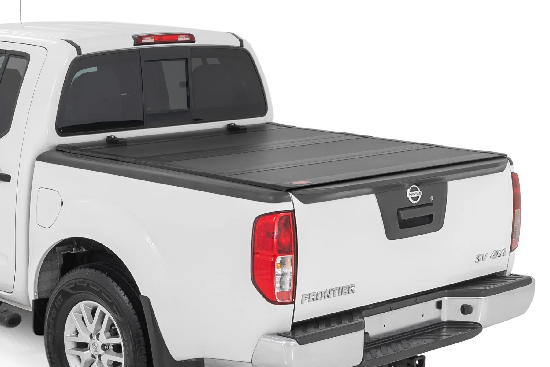 Elevate your Nissan’s functionality and appearance with Rough Country’s second-generation Frontier Hard Tri-fold Flip-up Bed Cover. Unlike traditional bed covers that limit access to your truck bed, our innovative Flip-up design grants you complete access to your truck bed, making it easier to load and unload large items. Full-Bed Access: With Rough Country’s Tri-fold Flip-up Bed Cover, you can conveniently flip up the cover, allowing full-bed access without the hassle of removing the cover. Built to Last: Our bed cover is crafted from lightweight aluminum and boasts a resilient powder coat finish. This coating resists corrosion and wear, ensuring that your truck bed maintains its pristine appearance even in harsh weather conditions. Superior Water Drainage System: The bed rails of this bed cover feature an innovative water drainage system. No need to worry about water pooling on your cover or seeping into your truck bed. Premium Weather Seals: The Tri-fold cover also includes top-of-the-line weather-resistant seals that create a tight and secure barrier along the bed rails. Thes e seals ensure your cargo remains protected from the elements, even in inclement weather. Secure Cargo Storage: Provide added security for your truck bed contents, deterring theft and protecting valuable items. Elevate your Frontier’s bed and get full access, unmatched durability, and superior weather protection with Rough Country’s Hard Tri-fold Flip-up Bed Cover!