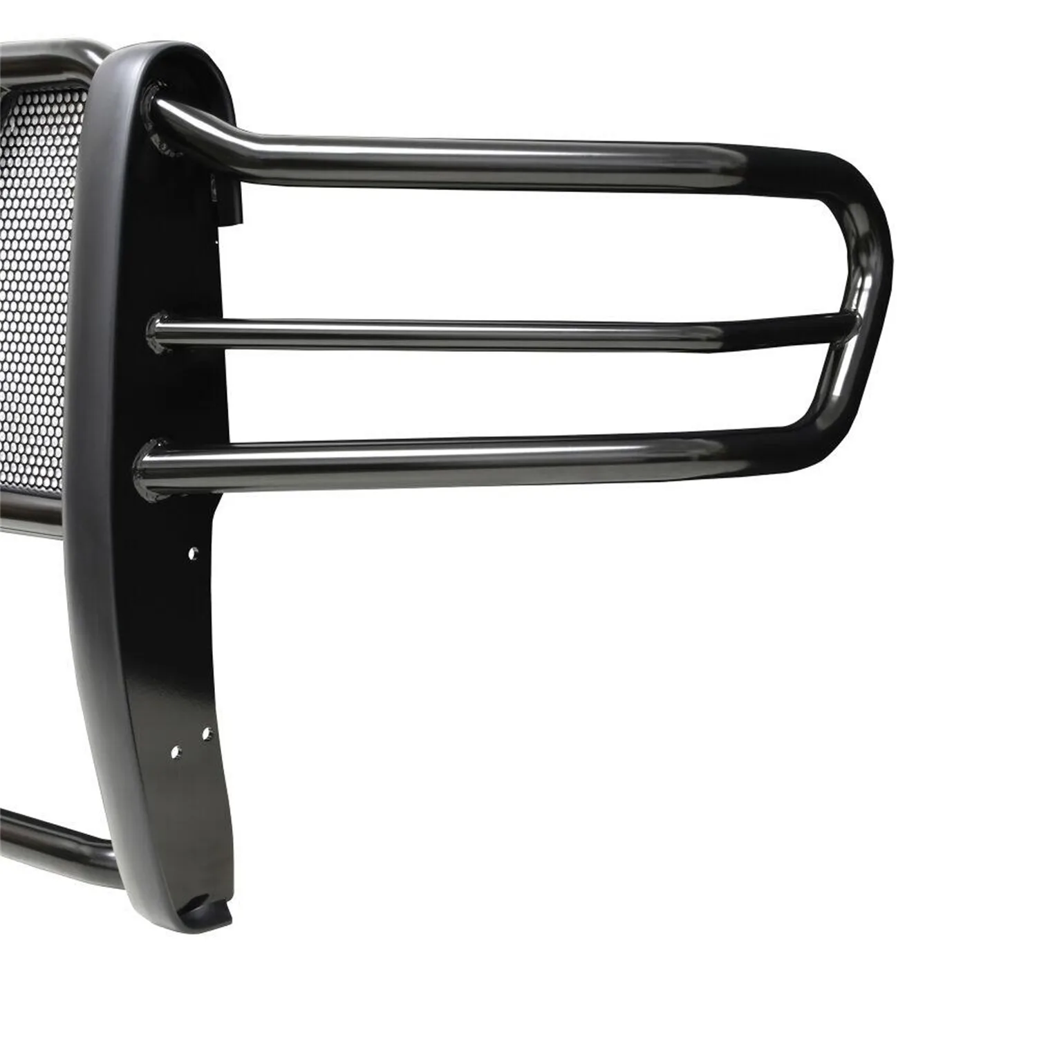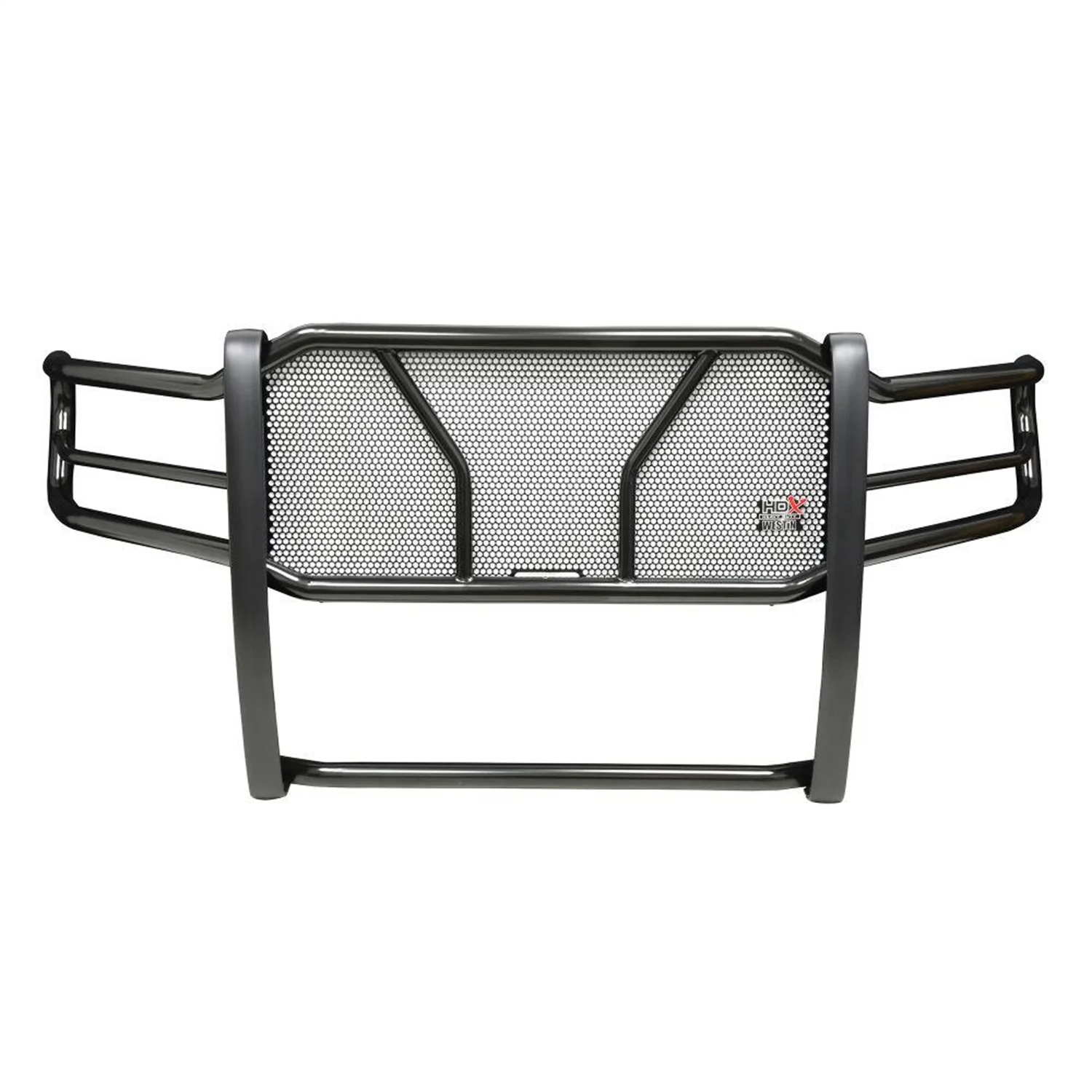 The HDX Grille Guard is the ultimate in extreme truck gear. Its a fully welded 1-piece grille guard that features full wraparound wings made of heavy duty 2in. diameter tube. Uprights are finished and protected with extra wide rubber that is 1/8in. thick and 2 3/4in. wide resulting in a solid clean look. The full punch plate grille protects the vehicles grille area. HDX Grille Guards are available in stainless and black powder coat finish.