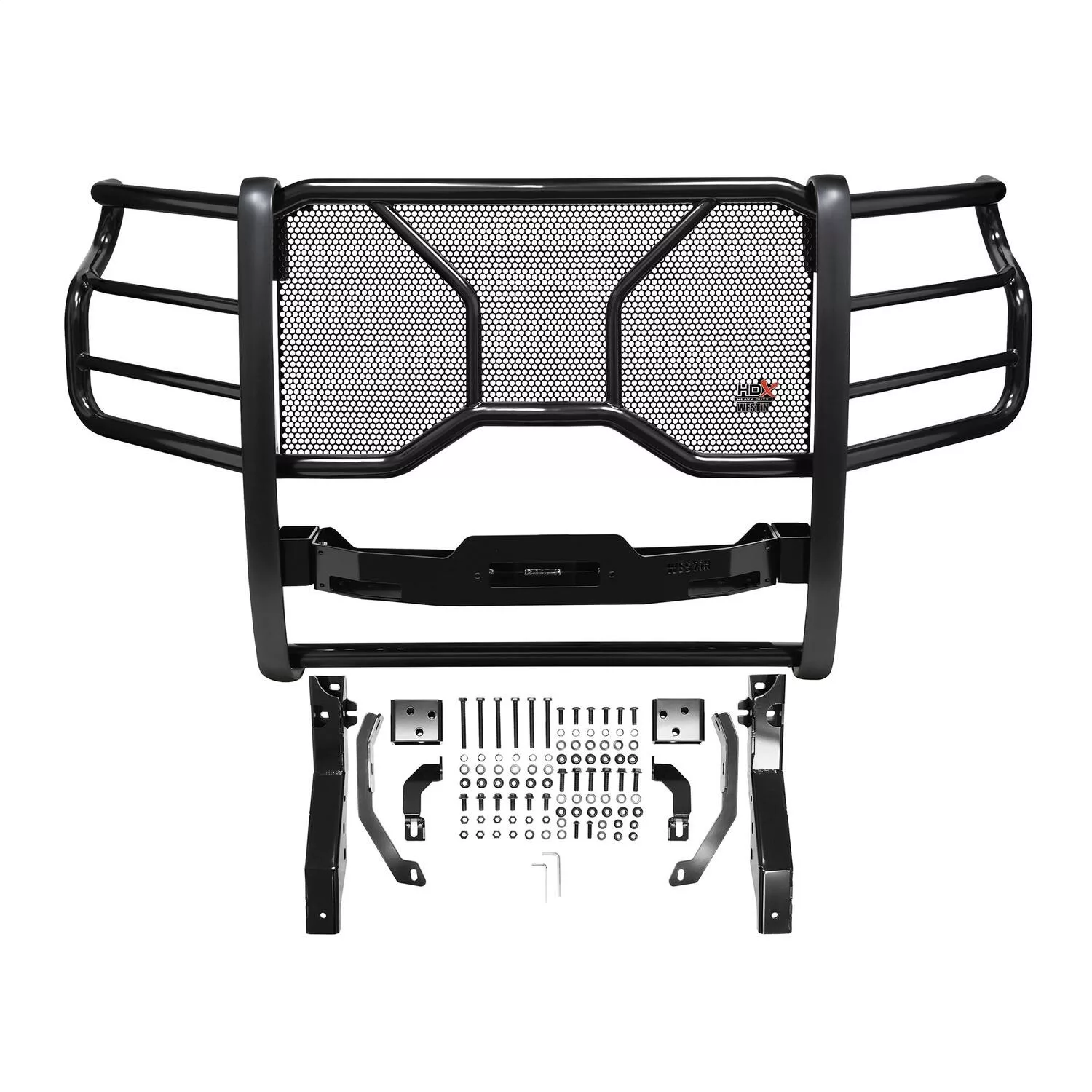 Westin’s HDX Winch Mount Grille Guard is extreme truck gear for the enthusiast that seeks additional functionality for their truck. It encompasses all of the features of an HDX Grille Guard with the additional capability to hold a winch up to 10.25 inches tall with a rating of up to 12,000 lbs. Winch trays are tested and capability confirmed to a minimum straight line pull of 16,500 lbs. HDX Winch Mount Grille Guards are available in 304 stainless steel backed by a lifetime warranty and black powder coat steel backed by a 3 year warranty.