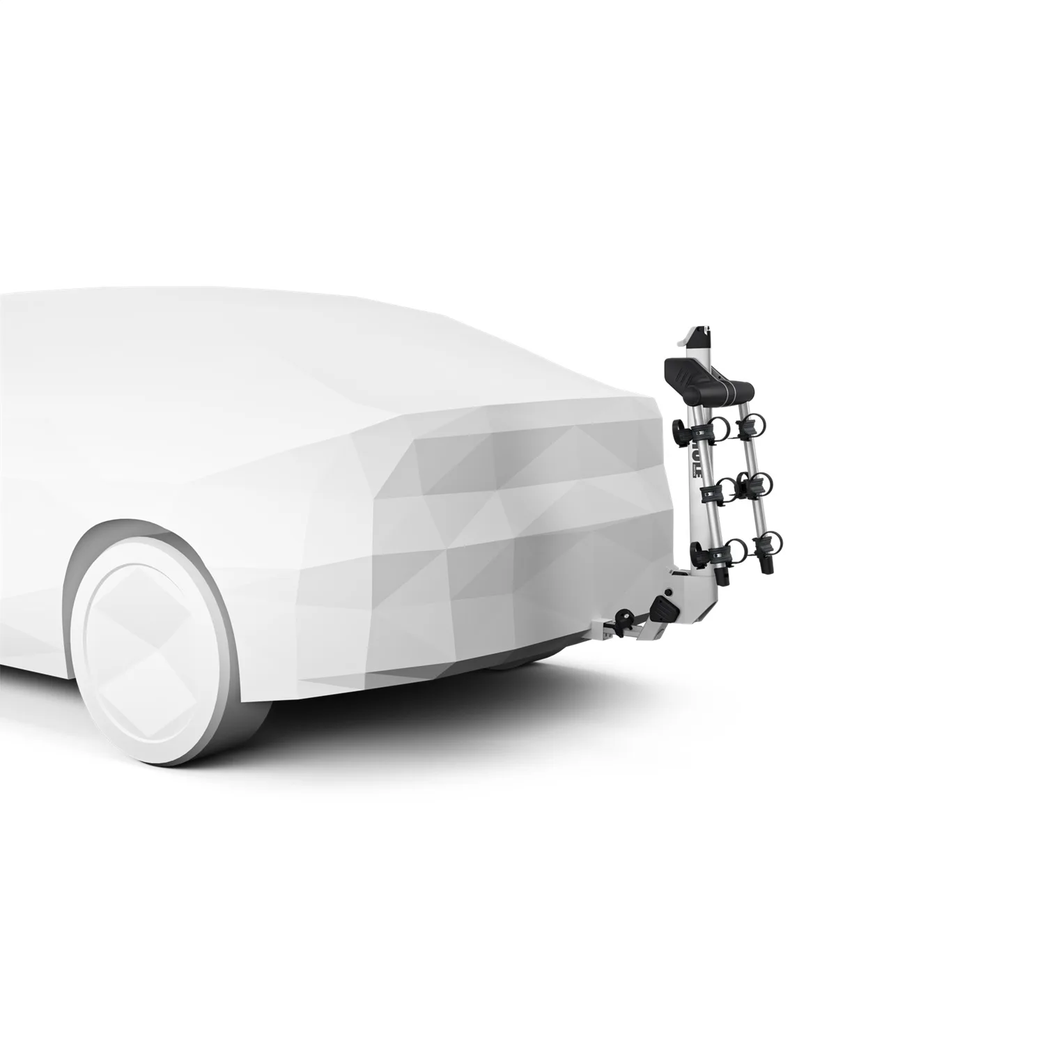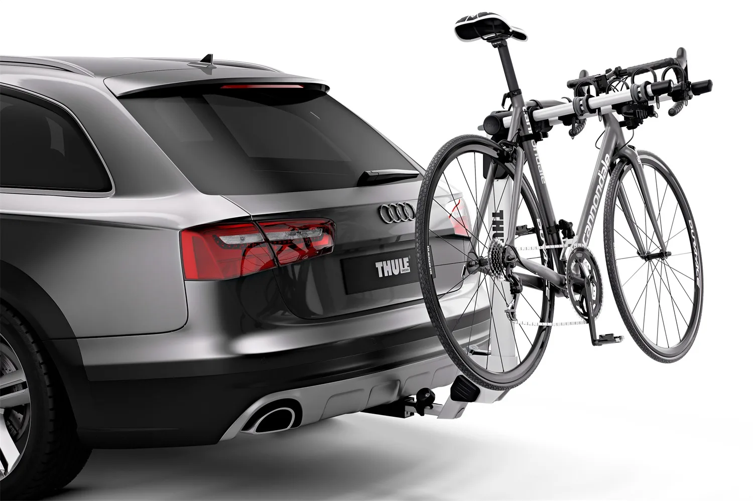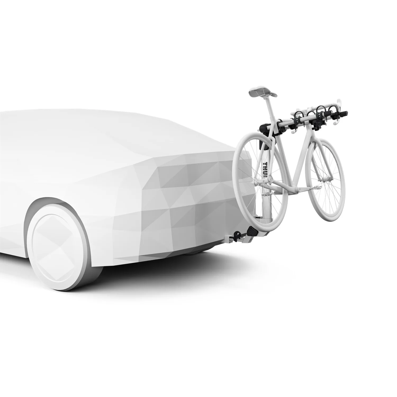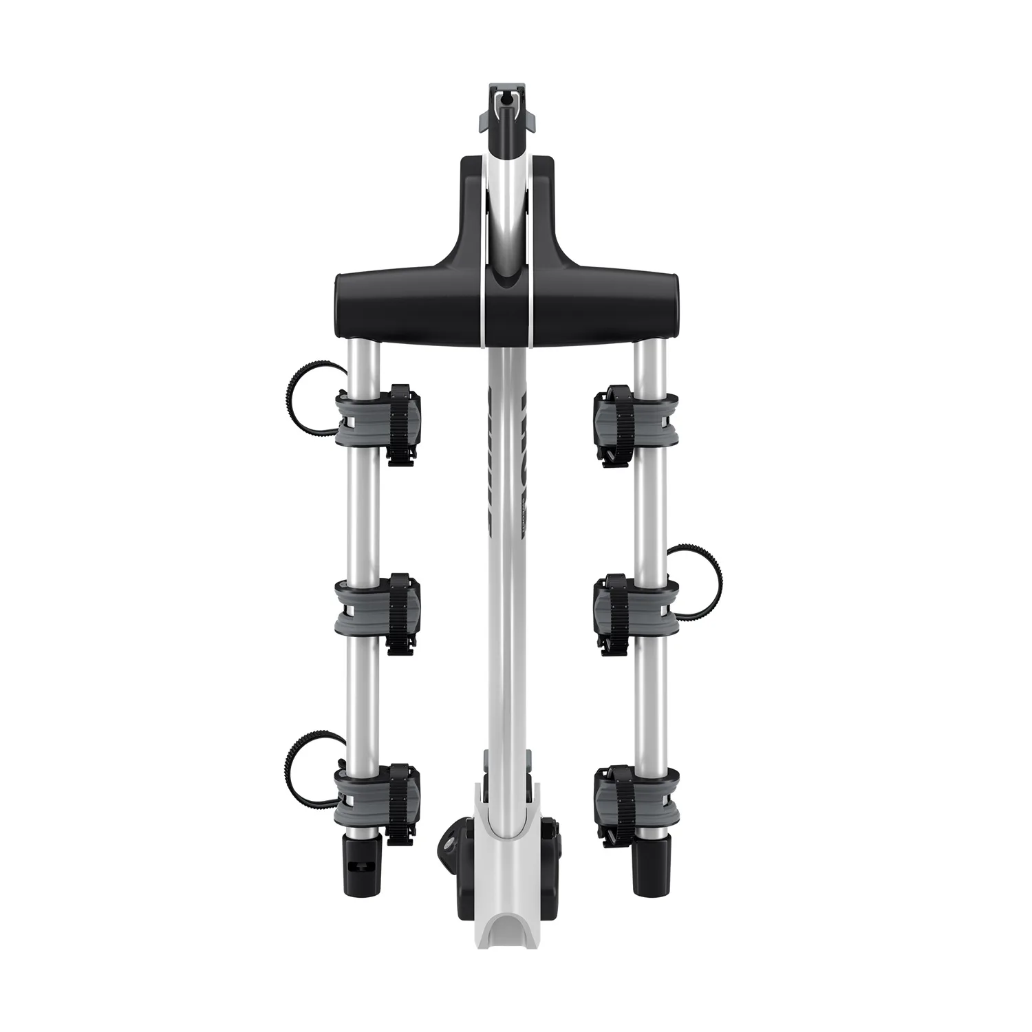 Lightweight aluminum hitch bike rack provides outstanding bike protection and easy-on, easy-off convenience.