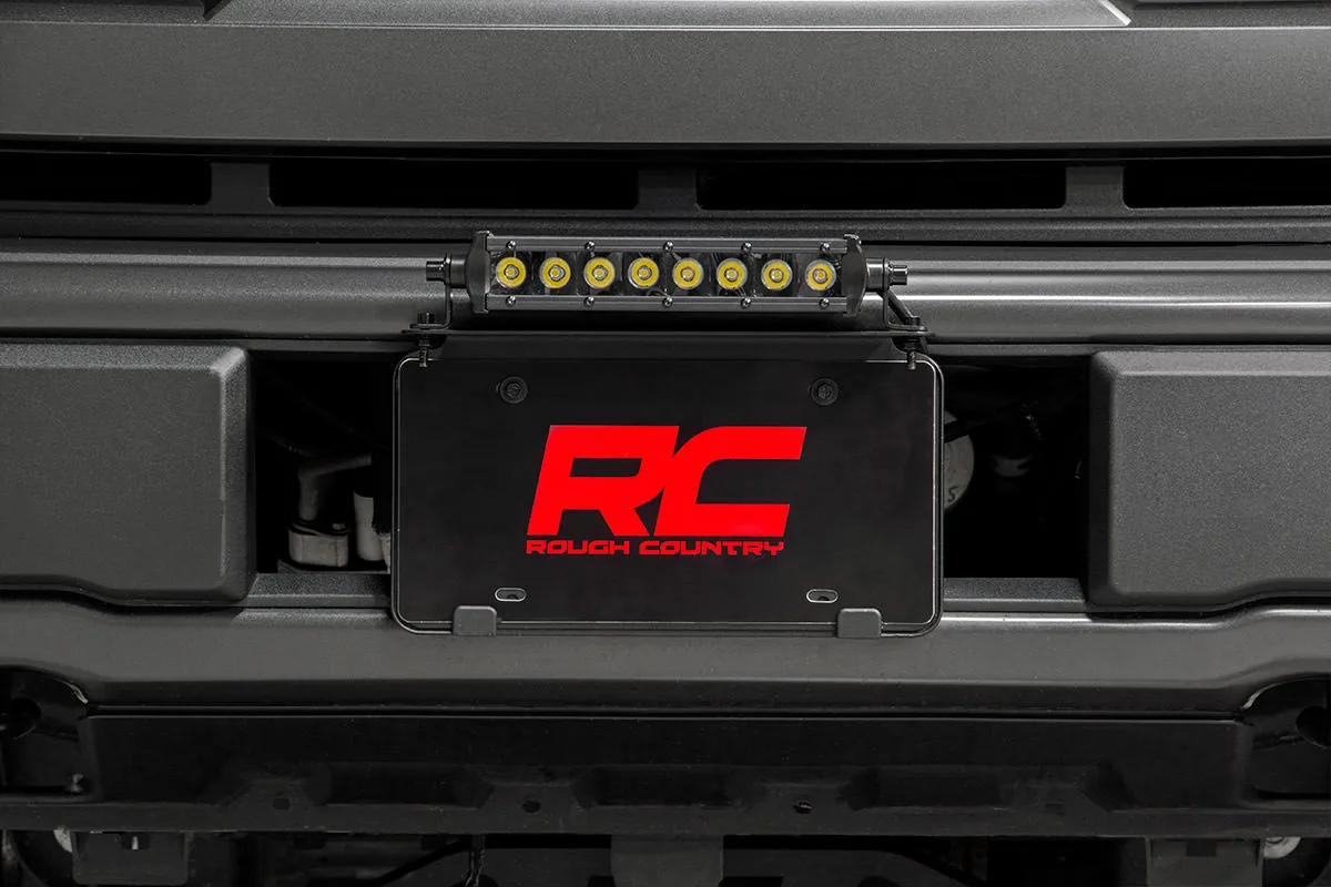 COMMAND THE DARK: Rough Country’s Universal 8-inch License Plate LED Kit makes it easy to upgrade your vehicle’s lighting capabilities on any standard-sized, front license plate location. Improve the look of your front bumper with this easy-to-install upgrade. This all-inclusive kit features an 8-inch single-row LED Light bar, mounting kit, light bar cover, and premium, braided wiring harness with an on/off switch. With 3,200 lumens and 40 watts of off-road lighting power mounted in a prime position, this kit provides ample illumination for navigating trails and can provide a handy source of light for working in front of your vehicle. Rough Country LED Light bars feature an IP67 waterproof housing, capable of withstanding elements like water, dirt and dust! This durable mounting solution features a backing plate that aligns perfectly with standard-sized license plate holes for easy installation, with plenty of room remaining to run a front license plate or novelty plate. Includes a lifetime warranty on the mounting system and 3-year light bar warranty.