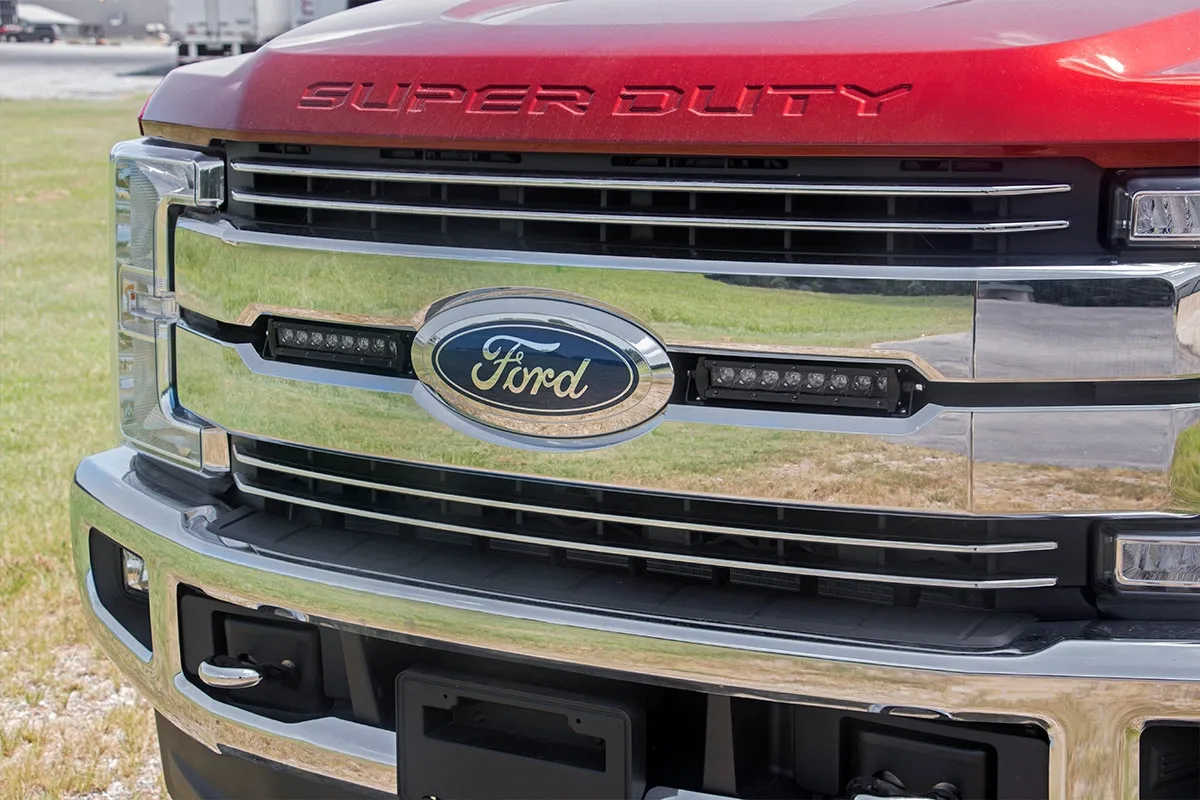 COMMAND THE DARK with Rough Country’s 8″ LED Grille Kit! This innovative lighting kit mounts perfectly in the recess of your Super Duty grille, and fits in so well with the front-end aesthetic that people may ask you if it was a factory option! Each kit includes a set of Rough Country’s 8″ LED Light Bars, available in your choice of Chrome-series or Black-series for the exact look you desire. With a combined 6,400 lumens and 80 watts, this simple kit offers you massive LED output, in the perfect, front-facing position to light up the path ahead. Each light features an IP67 waterproof design in a durable die-cast aluminum housing for unparalleled protection from water, dust and debris. This kit includes a premium, flat-wound wiring harness with on/off switch or can be wired directly into your factory Ford upfitter switch. Includes a 3-year LED warranty and lifetime mount warranty.