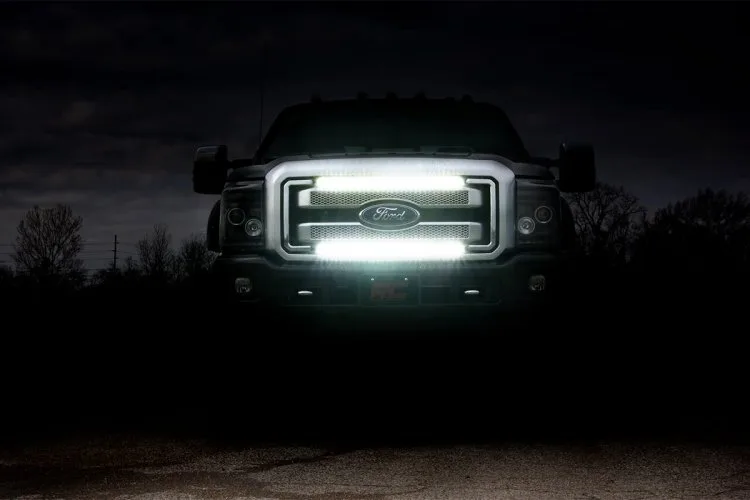 A fan-favorite add-on that looks like factory equipment: Rough Country’s Grille Mount kits for F-250 / F-350 Super Duty models include everything you need to mount our 30-inch Single-Row LED in the factory opening of the truck’s grille. This innovative setup makes for a clean, flush look that’s sure to turn heads. This easy-to-install kit features our 30-inch Single-Row CREE LED Lightbar, offering enormous lighting power in a sleek and stylish, modern frame. With a powerful 12,000 Lumens and 150 Watt output, this LED light is a sight to behold. Rough Country LED Lights feature a 3-Year Manufacturer’s Warranty.
