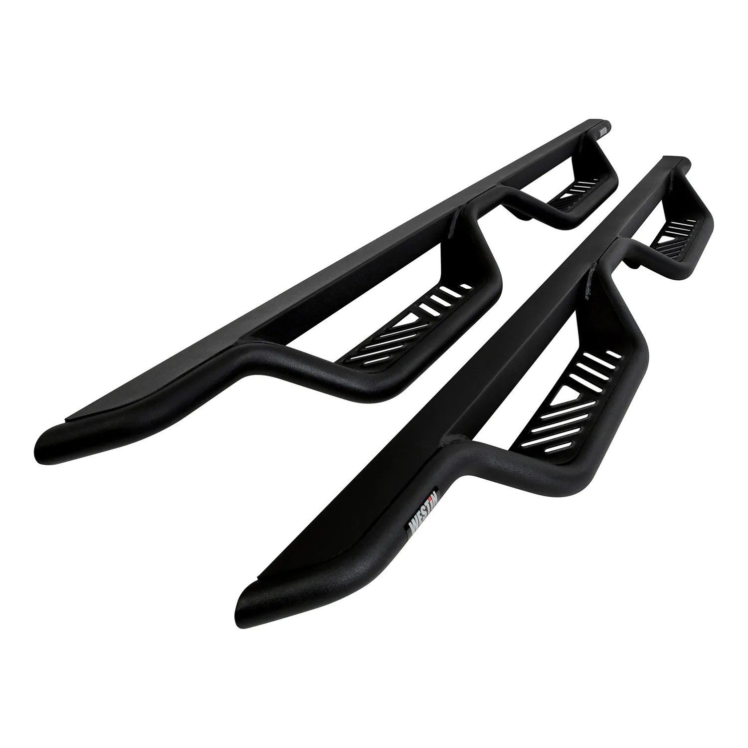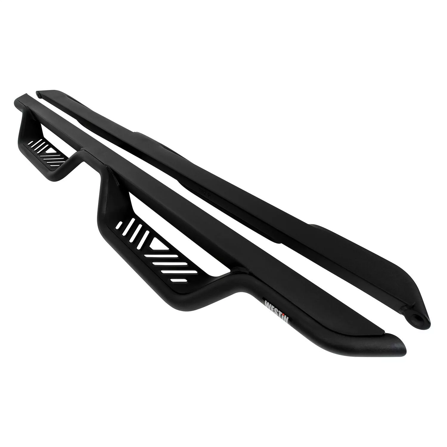 If you want a unique upgrade that makes accessing your truck, Jeep or SUV easier, Westin’s Outlaw Drop Nerf Step Bars are the finishing touch you need. Crafted from mandrel bent 1.5′ diameter steel tube and paired with a welded cab length top plate, these step bars are more than just an eye-catching accessory. The distinctive 4′ drop step features a die-stamped step plate that makes it easy to knock the mud, dirt, and debris from your feet before you step into the cabin. Worried about compatibility’ We’ve got you covered. From GM, Ram, and Toyota to Ford Trucks and even the newer 2 and 4 door Broncos, the Outlaw Drop Nerf Step Bars are designed to be a seamless fit. You can learn all about the benefits of adding nerf bars to your rig here. Durability’ Check. Aided by an electrostatic base coat, these bars are resistant to corrosion. They’re finished with corrosion-resistant textured powder-coat (even in the stainless finish option) and feature a die-stamped stainless steel step area which makes them ruggedly appealing and able to withstand the elements. No tedious installations here ‘ the Outlaw Drop Nerf Step Bars install with a bolt-on installation process that doesn’t require any drilling. Plus, all the necessary hardware and mounting brackets are included in the package. These step bars are backed by the confidence of Westin’s full 3-year warranty. If you’re in the market for a practical and stylish nerf step with a blend of premium features, these side steps might just be your next buy. Contact us if you have any questions – we’re happy to help.