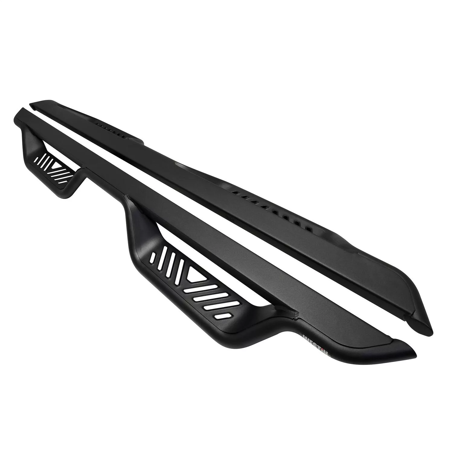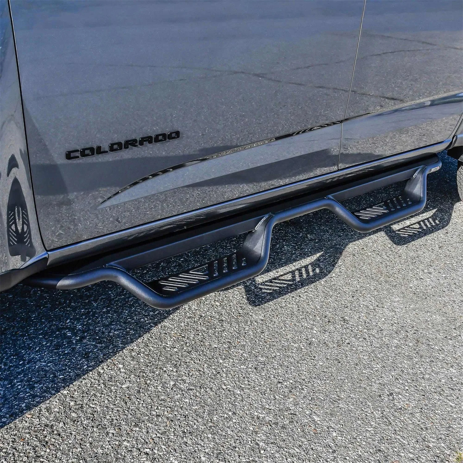 If you want a unique upgrade that makes accessing your truck, Jeep or SUV easier, Westin’s Outlaw Drop Nerf Step Bars are the finishing touch you need. Crafted from mandrel bent 1.5′ diameter steel tube and paired with a welded cab length top plate, these step bars are more than just an eye-catching accessory. The distinctive 4′ drop step features a die-stamped step plate that makes it easy to knock the mud, dirt, and debris from your feet before you step into the cabin. Worried about compatibility’ We’ve got you covered. From GM, Ram, and Toyota to Ford Trucks and even the newer 2 and 4 door Broncos, the Outlaw Drop Nerf Step Bars are designed to be a seamless fit. You can learn all about the benefits of adding nerf bars to your rig here. Durability’ Check. Aided by an electrostatic base coat, these bars are resistant to corrosion. They’re finished with corrosion-resistant textured powder-coat (even in the stainless finish option) and feature a die-stamped stainless steel step area which makes them ruggedly appealing and able to withstand the elements. No tedious installations here ‘ the Outlaw Drop Nerf Step Bars install with a bolt-on installation process that doesn’t require any drilling. Plus, all the necessary hardware and mounting brackets are included in the package. These step bars are backed by the confidence of Westin’s full 3-year warranty. If you’re in the market for a practical and stylish nerf step with a blend of premium features, these side steps might just be your next buy. Contact us if you have any questions – we’re happy to help.