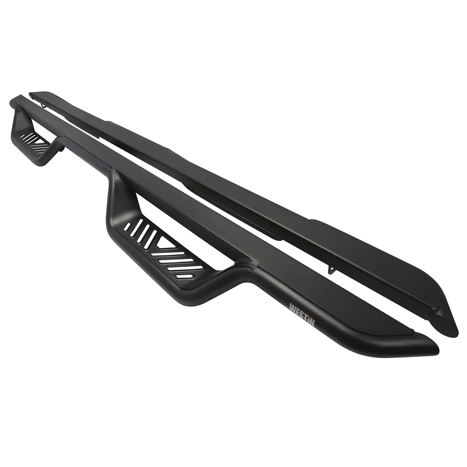 If you want a unique upgrade that makes accessing your truck, Jeep or SUV easier, Westin’s Outlaw Drop Nerf Step Bars are the finishing touch you need. Crafted from mandrel bent 1.5′ diameter steel tube and paired with a welded cab length top plate, these step bars are more than just an eye-catching accessory. The distinctive 4′ drop step features a die-stamped step plate that makes it easy to knock the mud, dirt, and debris from your feet before you step into the cabin. Worried about compatibility’ We’ve got you covered. From GM, Ram, and Toyota to Ford Trucks and even the newer 2 and 4 door Broncos, the Outlaw Drop Nerf Step Bars are designed to be a seamless fit. You can learn all about the benefits of adding nerf bars to your rig here. Durability’ Check. Aided by an electrostatic base coat, these bars are resistant to corrosion. They’re finished with corrosion-resistant textured powder-coat (even in the stainless finish option) and feature a die-stamped stainless steel step area which makes them ruggedly appealing and able to withstand the elements. No tedious installations here ‘ the Outlaw Drop Nerf Step Bars install with a bolt-on installation process that doesn’t require any drilling. Plus, all the necessary hardware and mounting brackets are included in the package. These step bars are backed by the confidence of Westin’s full 3-year warranty. If you’re in the market for a practical and stylish nerf step with a blend of premium features, these side steps might just be your next buy. Contact us if you have any questions – we’re happy to help.