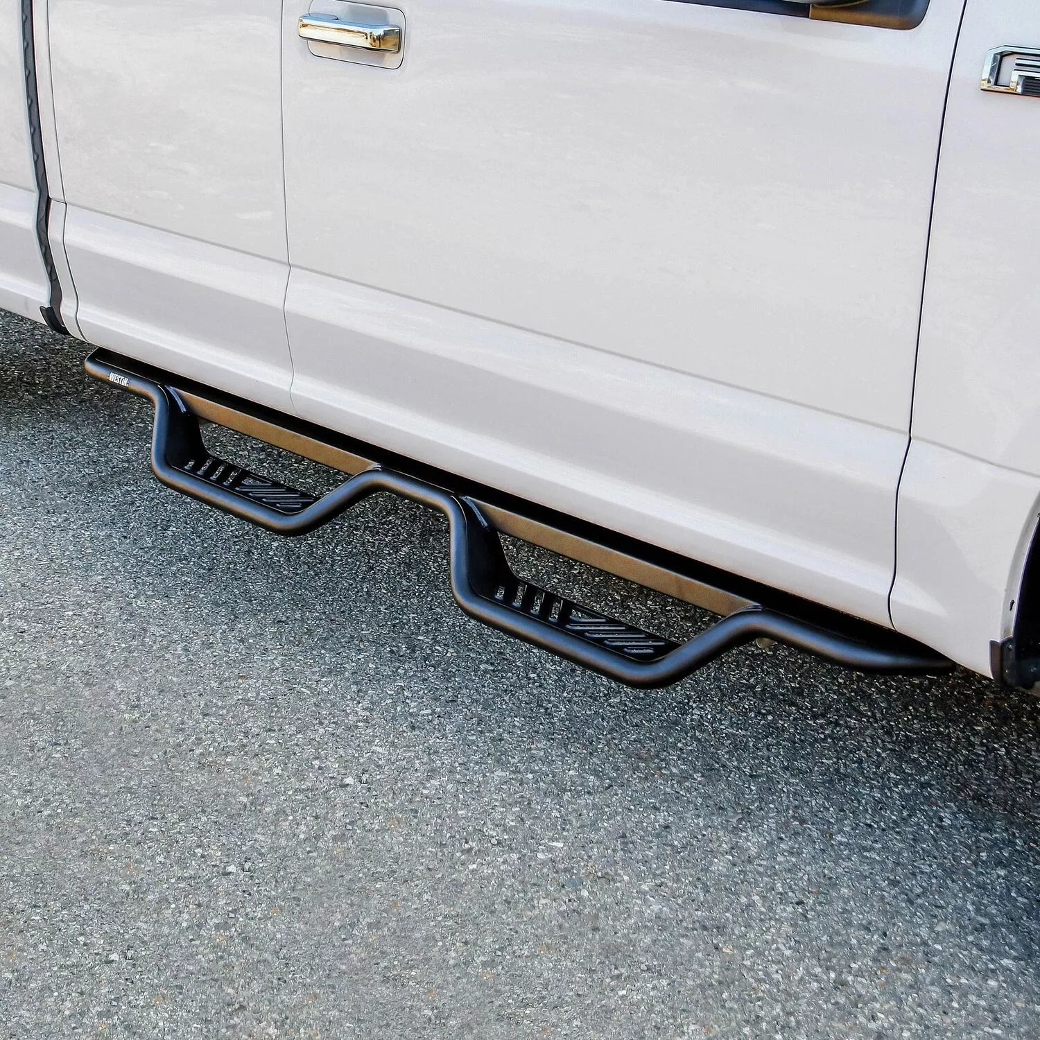 If you want a unique upgrade that makes accessing your truck, Jeep or SUV easier, Westin’s Outlaw Drop Nerf Step Bars are the finishing touch you need. Crafted from mandrel bent 1.5′ diameter steel tube and paired with a welded cab length top plate, these step bars are more than just an eye-catching accessory. The distinctive 4′ drop step features a die-stamped step plate that makes it easy to knock the mud, dirt, and debris from your feet before you step into the cabin. Worried about compatibility’ We’ve got you covered. From GM, Ram, and Toyota to Ford Trucks and even the newer 2 and 4 door Broncos, the Outlaw Drop Nerf Step Bars are designed to be a seamless fit. You can learn all about the benefits of adding nerf bars to your rig here. Durability’ Check. Aided by an electrostatic base coat, these bars are resistant to corrosion. They’re finished with corrosion-resistant textured powder-coat (even in the stainless finish option) and feature a die-stamped stainless steel step area which makes them ruggedly appealing and able to withstand the elements. No tedious installations here ‘ the Outlaw Drop Nerf Step Bars install with a bolt-on installation process that doesn’t require any drilling. Plus, all the necessary hardware and mounting brackets are included in the package. These step bars are backed by the confidence of Westin’s full 3-year warranty. If you’re in the market for a practical and stylish nerf step with a blend of premium features, these side steps might just be your next buy. Contact us if you have any questions – we’re happy to help.