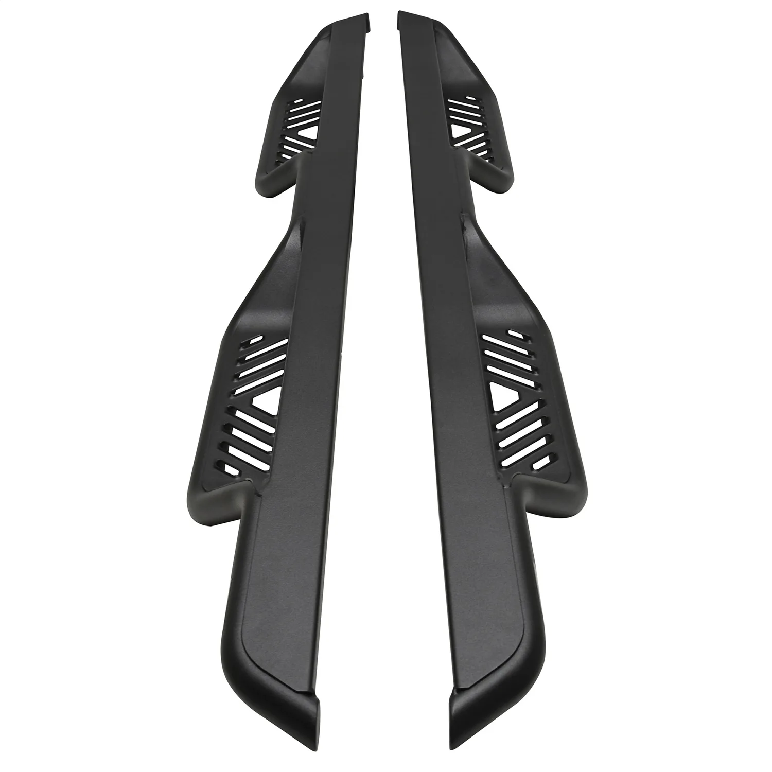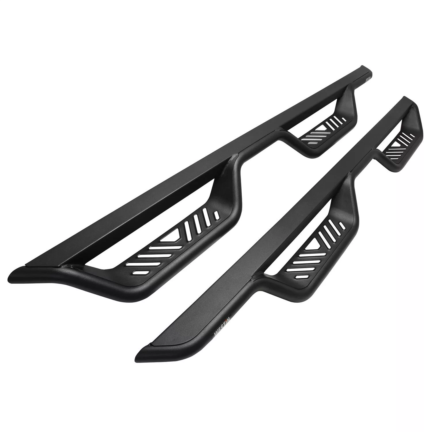 If you want a unique upgrade that makes accessing your truck, Jeep or SUV easier, Westin’s Outlaw Drop Nerf Step Bars are the finishing touch you need. Crafted from mandrel bent 1.5′ diameter steel tube and paired with a welded cab length top plate, these step bars are more than just an eye-catching accessory. The distinctive 4′ drop step features a die-stamped step plate that makes it easy to knock the mud, dirt, and debris from your feet before you step into the cabin. Worried about compatibility’ We’ve got you covered. From GM, Ram, and Toyota to Ford Trucks and even the newer 2 and 4 door Broncos, the Outlaw Drop Nerf Step Bars are designed to be a seamless fit. You can learn all about the benefits of adding nerf bars to your rig here. Durability’ Check. Aided by an electrostatic base coat, these bars are resistant to corrosion. They’re finished with corrosi on-resistant textured powder-coat (even in the stainless finish option) and feature a die-stamped stainless steel step area which makes them ruggedly appealing and able to withstand the elements. No tedious installations here ‘ the Outlaw Drop Nerf Step Bars install with a bolt-on installation process that doesn’t require any drilling. Plus, all the necessary hardware and mounting brackets are included in the package. These step bars are backed by the confidence of Westin’s full 3-year warranty. If you’re in the market for a practical and stylish nerf step with a blend of premium features, these side steps might just be your next buy. Contact us if you have any questions – we’re happy to help.
