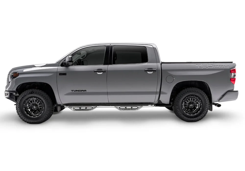 Patented N-FAB hoop step design featuring an all-new expanded and enclosed sure-grip step plate. With a 3 in. main tube diameter, this application fits high and tight to the vehicle body for a clean modern style. Fully welded 1-piece construction for strength, long lasting durability and ease of installation! Created from Stainless Steel construction. Drop…
