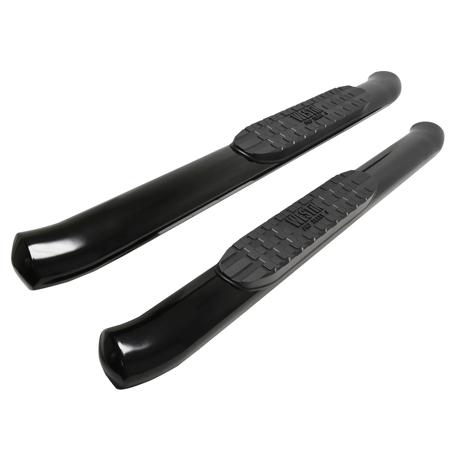 Westins Pro Traxx 4 Oval Nerf Step Bars feature a 4in. oval tube with a heavy-duty step pad that provides a wider and more secure step area. They feature 30 factory style bends that have seamless domed ends so there are no end-caps or exposed bolt heads. Applications are bolt-on installation.