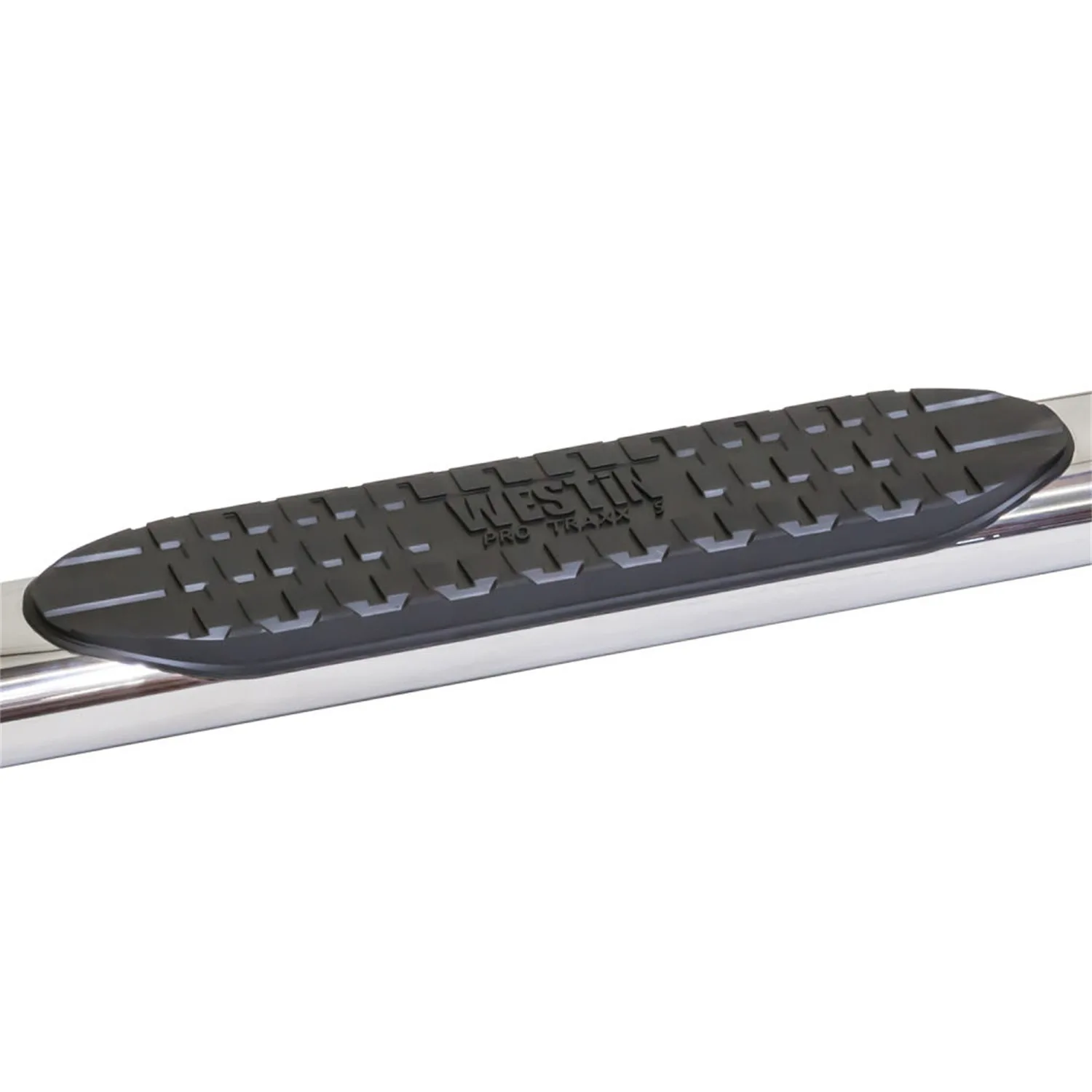 Westins Pro Traxx 5 Oval Nerf Step Bars feature a 5in. oval tube with a heavy-duty step pad that provides a wider and more secure step area. They feature 30 factory style bends that have seamless domed ends so there are no end-caps or exposed bolt heads. Applications are bolt-on installation.