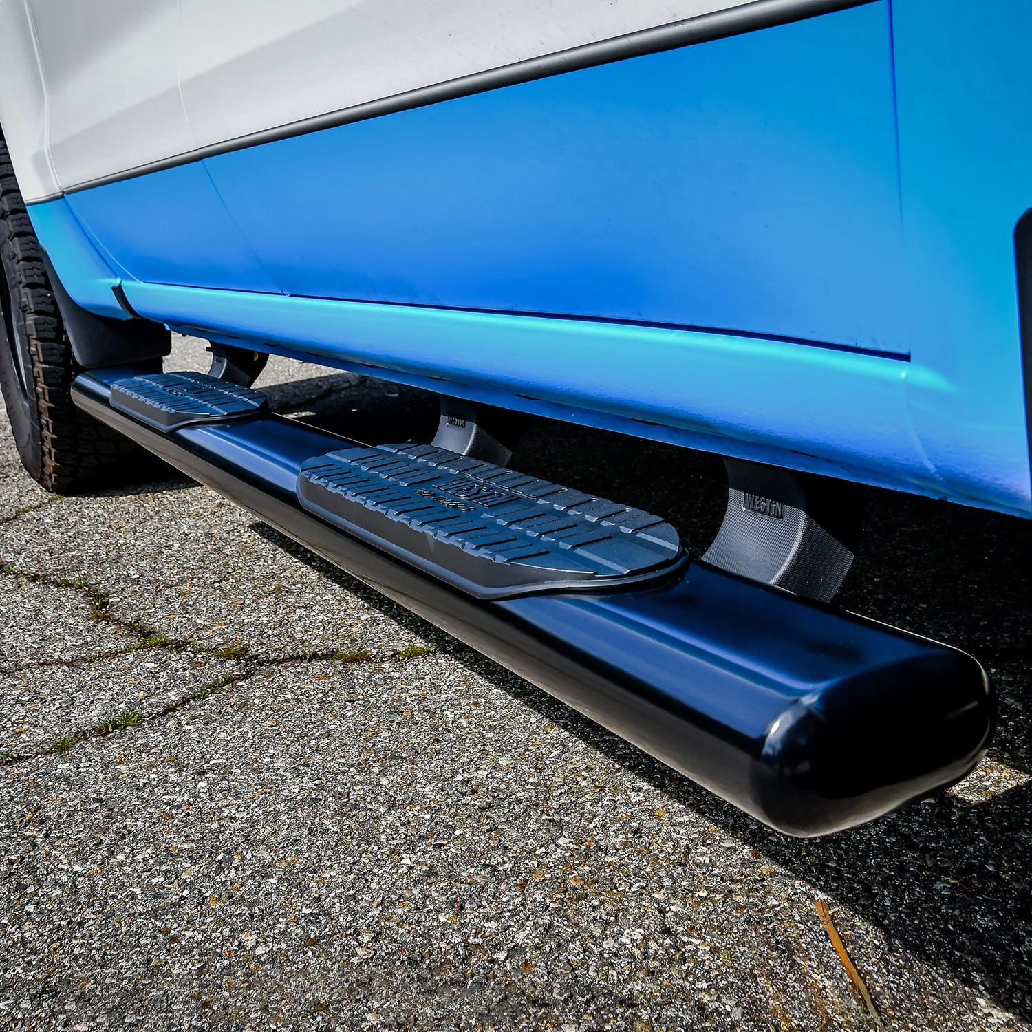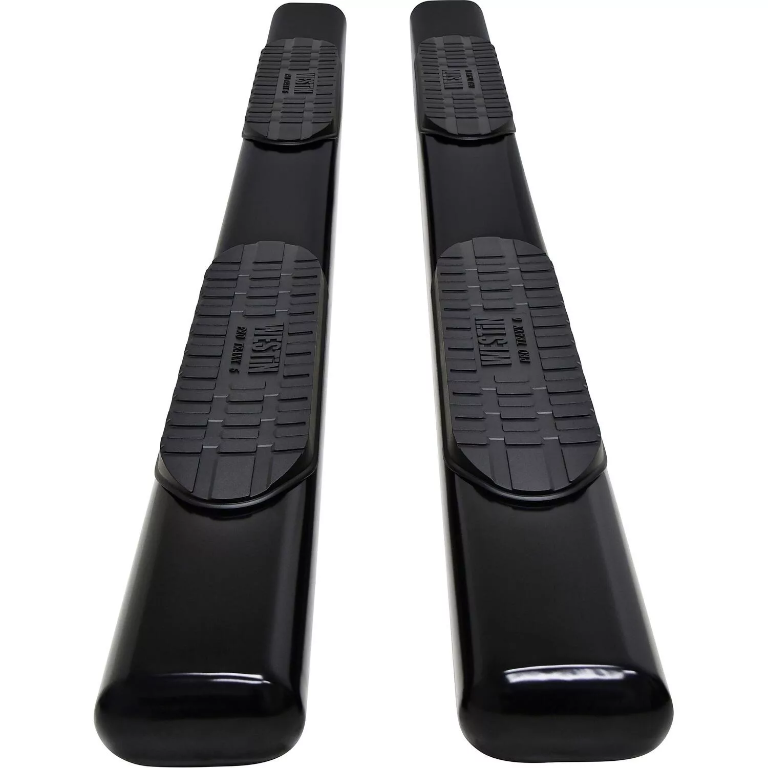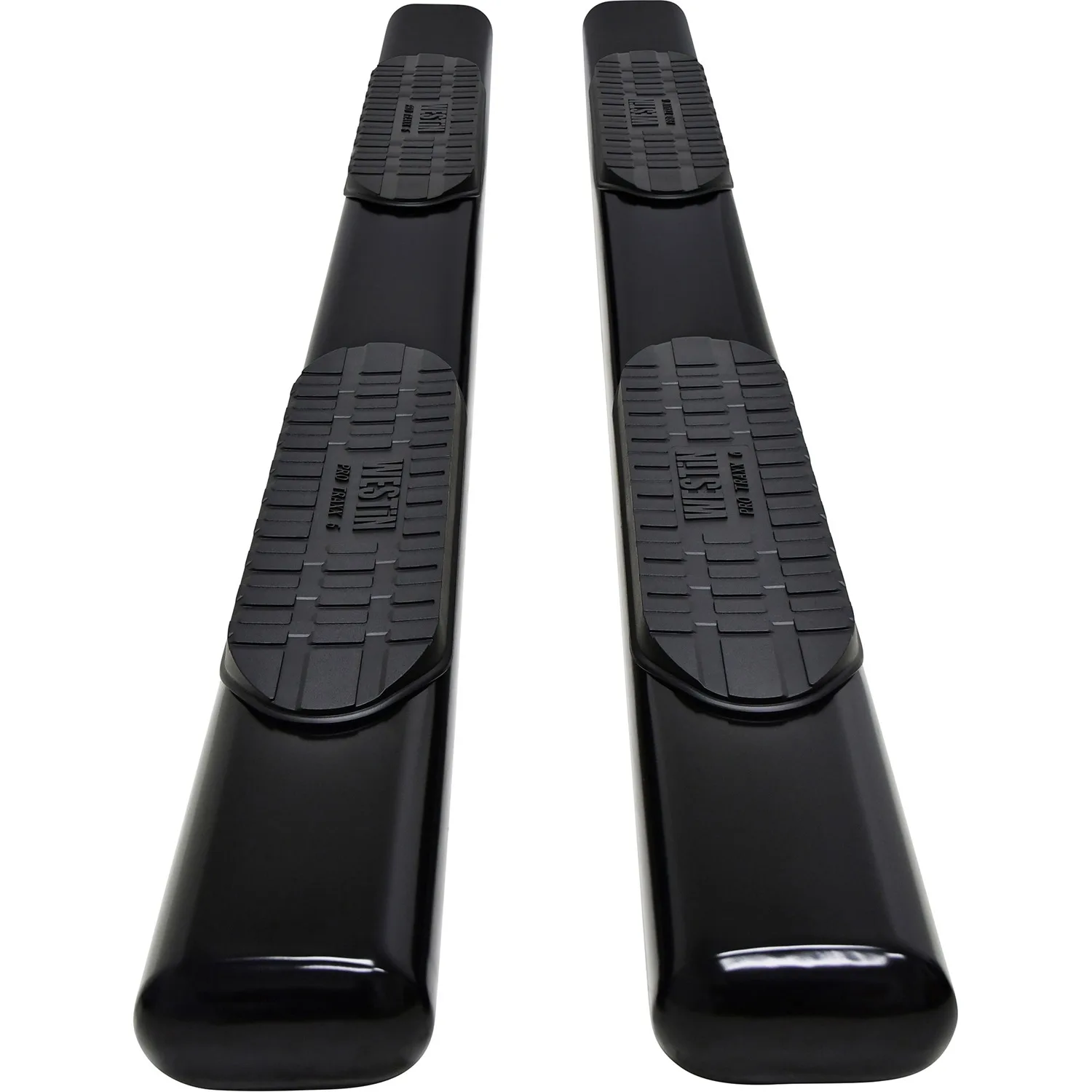 Westin PRO TRAXX 6 for full-sized trucks are cab-length steps for ideal functionality and cab access. They feature extra heavy-duty bold step pads and a unique oval tube shape in a straight tube design. Applications are vehicle specific bolt-on, no-drill and rocker panel mounted. Available in polished stainless steel, backed by a lifetime warranty, and black powder coated mild steel, backed by a 3 year warranty.