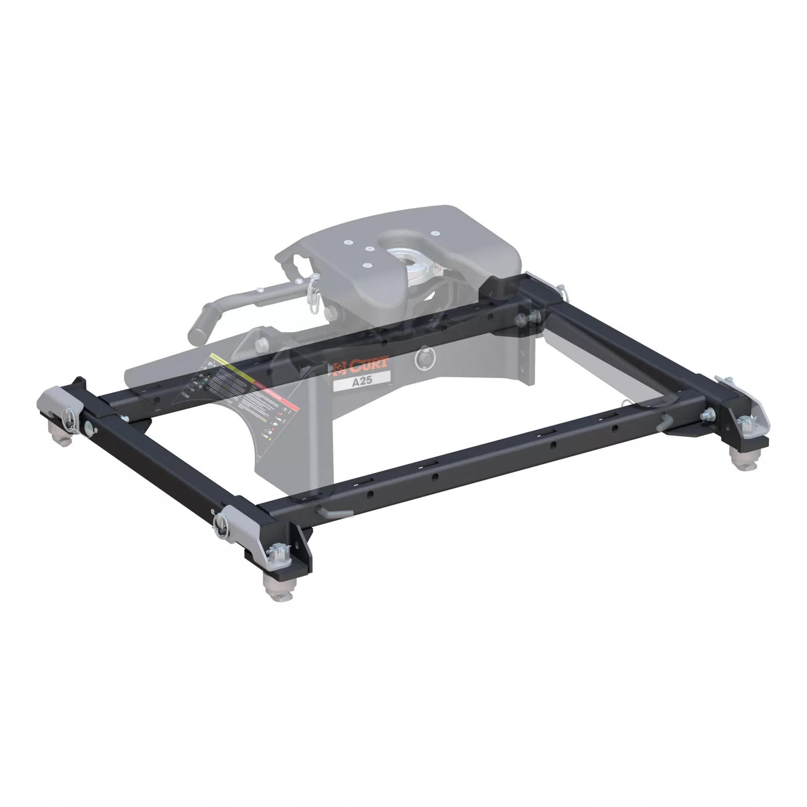 The CURT OEM puck system 5th wheel adapter for Ram pickups combines the functionality of CURT 5th wheel puck system products with the strength and convenience of the truck bed puck system. The adapter provides a set of industry-standard 5th wheel rails to securely mount a CURT 5th wheel hitch or roller into the bed of your truck. It is designed to fit select model years of the Ram 2500 and 3500 (see application info to verify fitment). It features a set of adjustable, quarter-turn anchors to quickly and easily drop into the pucks and provide a moveable platform for the 5th wheel coupling point. This puck system adapter requires a specific puck system for installation (year range specific). It features a capacity of 25,000 lbs. and is compatible with all CURT 5th wheel legs and rollers (weight capacities are limited to the lowest-rated towing component). Like our other OEM puck system 5th wheel products, the key feature of the 5th wheel puck system adapter is its quarter-turn anchors. With the hitch initially bolted onto the adapter, the adapter can easily be dropped into place whenever needed and secured with the quarter-turn anchors. The anchors can also be adjusted to help eliminate chucking noises between the adapter and under-bed platform while towing. When you are finished towing, simply turn the anchors to remove the entire assembly within seconds. The CURT 5th wheel adapter for select Ram pickup trucks provides the ultimate in versatility for the CURT 5th wheel line. It tested for safety in accordance with SAE J2638 and is coated in a highly durable carbide black powder coat finish to protect against scratches and rust.