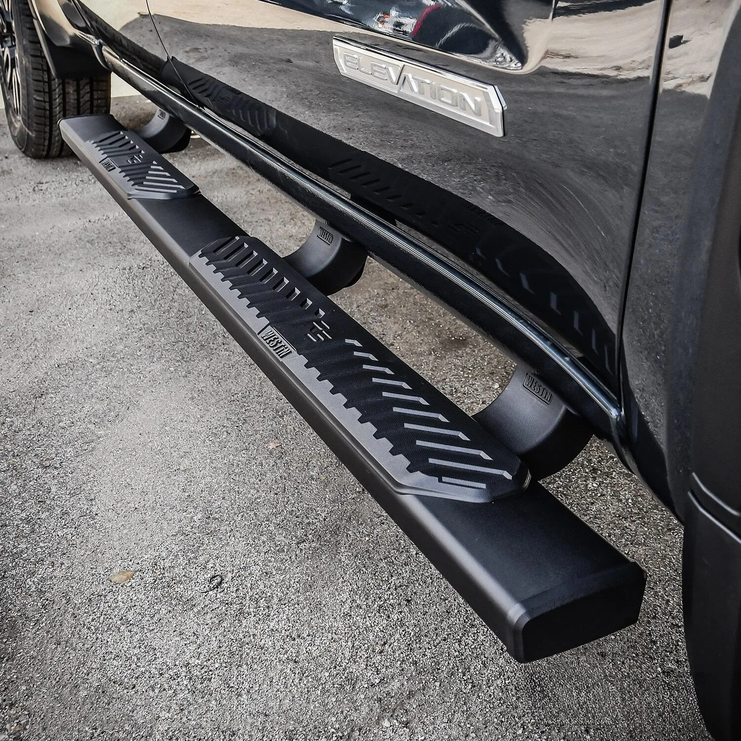 Westin R5 Nerf Step Bars have 5 inch wide step area with a unique molded polymer step pad design. R5 Nerf Step Bars are rocker panel mounted and include injection molded bracket covers for a full and stylized appearance. R5 LED Light Kit upgrade is available, sold separately.