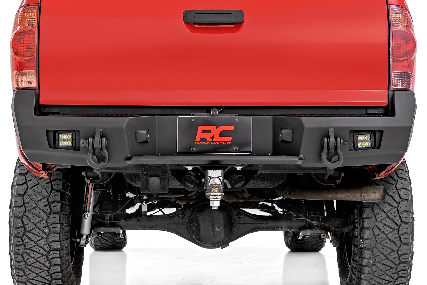 Give the rear of your second generation Tacoma an aggressive, new appearance with Rough Country’s Rear LED Bumper. This easy-to-install upgrade gives your truck an improved look and better functionality, with two pre-installed Rough Country LED cubes that offer impressive off-road illumination! Rough Country’s Rear LED Bumper is made of a durable, all-steel construction that s ready to handle whatever you dish out. Each bumper features two Rough Country Black-Series 2in LED Flush Mount Cubes for rear illumination. Unlike some aftermarket bumpers for this model, Rough Country’s LED Rear Bumper allows you to retain the factory receiver hitch for towing. Rough Country’s Rear LED Bumper is easy to install with common tools in a home garage! Best of all each bumper includes a 3-year warranty!