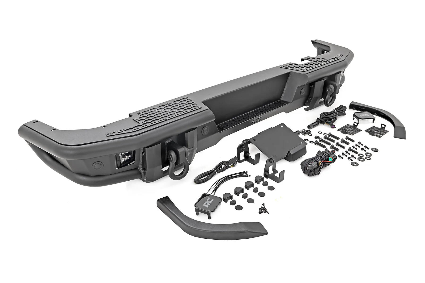 Innovative Design. Beef up your Bronco s rear end with Rough Country’s Tubular Rear LED Bumper! This stylish, durable steel bumper offers unbridled protection for the rear of your Bronco while giving you increased tire clearance for off-road articulation. With bold angles and contoured curves, this rear bumper is a true head-turner that s sure to get attention. Stylish Features and Construction. Rough Country’s Rear Bumper features an all-steel construction for serious durability and comes coated in a corrosion-resistant, textured black powder coat to withstand the elements. This rear bumper offers a robust design and includes two 2″ Black Series LED pods that boast 2880 lumens of raw power to ensure that you can see any obstacle behind you! Installation. With a no-cut or drilling required to install, installation couldn’t be easier. With an estimated timeframe of 3-4 hours, this full kit can be installed at home using standard tools and can be completed efficiently and quickly! Limited Lifetime Replacement Warranty. Rough Country’s Tubular Rear LED Bumper is backed with a limited lifetime replacement warranty towards manufacturer defects. As such, the product is protected from structural and workmanship damage after the date of purchase. With our industry-leading warranty give yourself peace of mind when using Rough Country’s Suspension products!