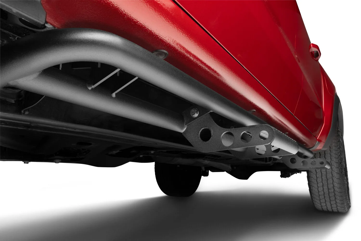 N-FAB RKR Rails Provide superior protection while enhancing the look of the vehicle. Constructed using 0.12 in. wall, 1.75 in. tubular steel, RKR Rails are treated inside and out for extra corrosion resistance so you know they are built to last. Finished with a durable textured black powder coat, N-FAB RKR Rails look as good as they perform both on and off-road. Making a great product even better, N-FAB offers optional Detachable Steps that are compatible with all N-FAB RKR Rails and Factory Toyota FJ Rock Rails. These steps offer convenient vehicle access for daily use and can be removed to allow for maximum group clearance when off-road.