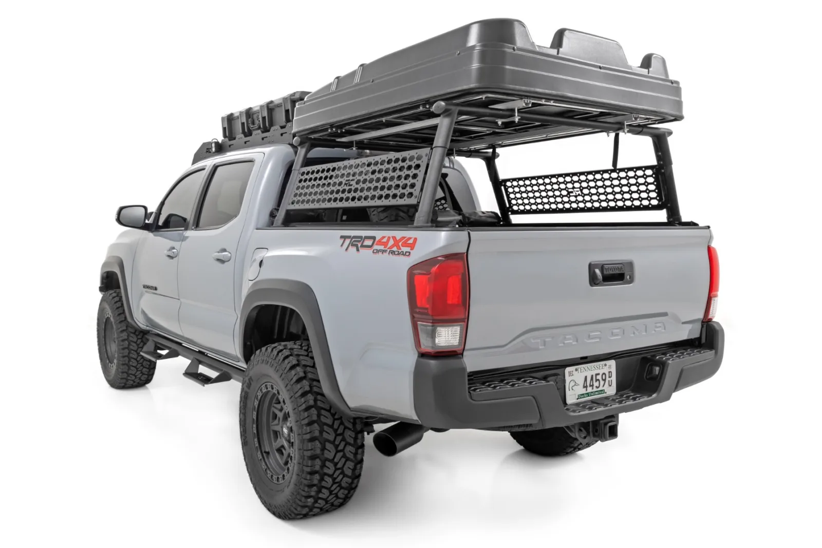 Organize your gear. The Rough Country Toyota Tacoma Bed Rack Molle Panel offers numerous benefits to Toyota owners. Say goodbye to cluttered and disorganized truck beds and take advantage of unlimited accessory attachment options that allow you to make the most of your bed space. Keep your gear secure, easily accessible and neatly stored. A…