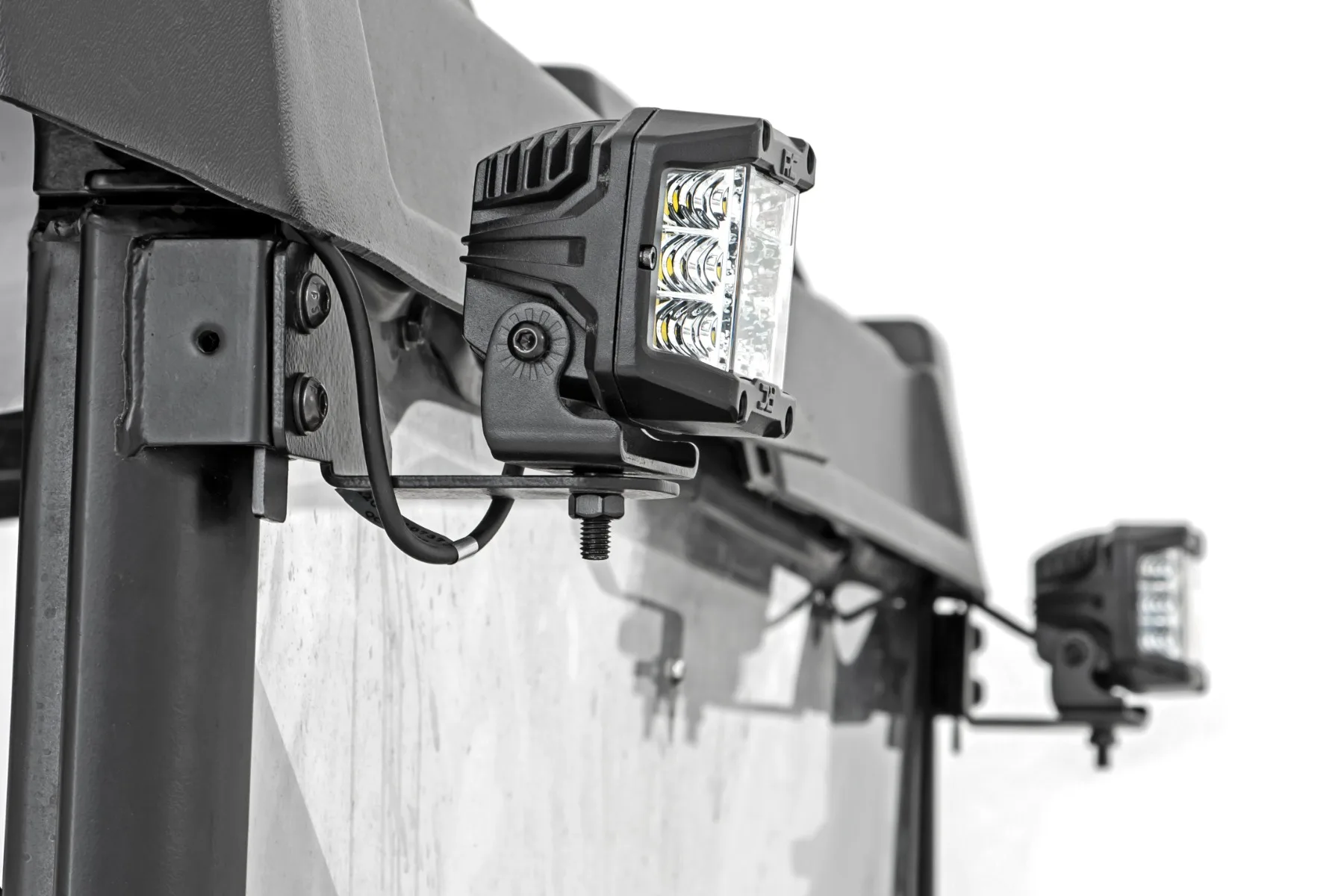 Light up the trails. Equip your Polaris Ranger with Rough Country’s incredibly powerful Cree LED light cubes. This handy solution includes everything you need to upgrade your Polaris UTV with of 2-inch or 3-inch LED light cubes at the back of the cab for outstanding illumination. Impressive Illumination. Rough Country’s Rear-Facing LED Kit offers multiple options to equip your vehicle with the much-needed lighting that you desire. With up to 13,500 lumens and 140 watts of high-intensity CREE LED output, you re sure to have plenty of LED power. Take your pick of our black-series 2-inch LED Cube or our 3-inch Wide Angle LED Cube! These all-weather lights feature a durable, IP67 Waterproof, die-cast aluminum housing and include a premium wiring harness with a toggle switch and in-line fuse. I nstallation. With a 100% bolt-on installation procedure, installing this LED Kit couldn’t be easier. With an estimated timeframe of 1-2 hours this full kit can be installed at home using standard tools and can be completed efficiently and quickly! Limited Lifetime Replacement Warranty. Rough Country’s Rear-Facing LED Kitis backed with a lifetime replacement warranty towards manufacturer defects. As such, the product is protected from structural and workmanship damage after the date of purchase. With our industry-leading warranty give yourself peace of mind when using Rough Country’s Suspension products!
