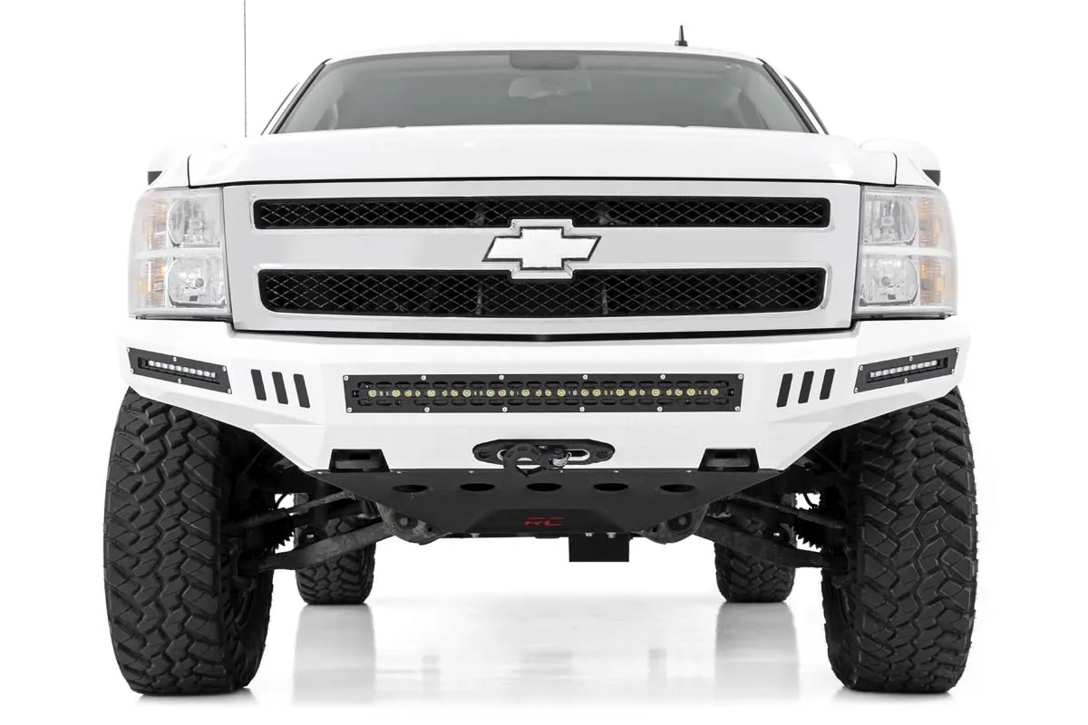 Put the finishing touch on your 07-13 GM DIY High Clearance bumper and our pre-built High Clearance bumpers with Rough Country’s PreRunner Style Skid Plate. This easy-to-install skid plate is designed to work with Rough Country’s PreRunner Bumper for a one-of-a-kind look that gives your vehicle an aggressive appearance and increased protection. The sleek, angular design was engineered to offer a prerunner type look for your GM 1500 featuring a dimple die for increased strength and laser-cut “RC” logo. This durable, steel skid plate attaches to the factory front crossmember or Rough Country drop crossmember kit giving your truck an improved, highly customized look. With a long-lasting, black powdercoat finish, each skid plate is designed to withstand the elements for a long lifespan of good looks and performance. Rough Country’s Pre-Runner Style Skid Plate features an easy. 100% bolt-on installation process that goes on lighting fast for a quick and easy upgrade you ll enjoy every time you look at your truck.