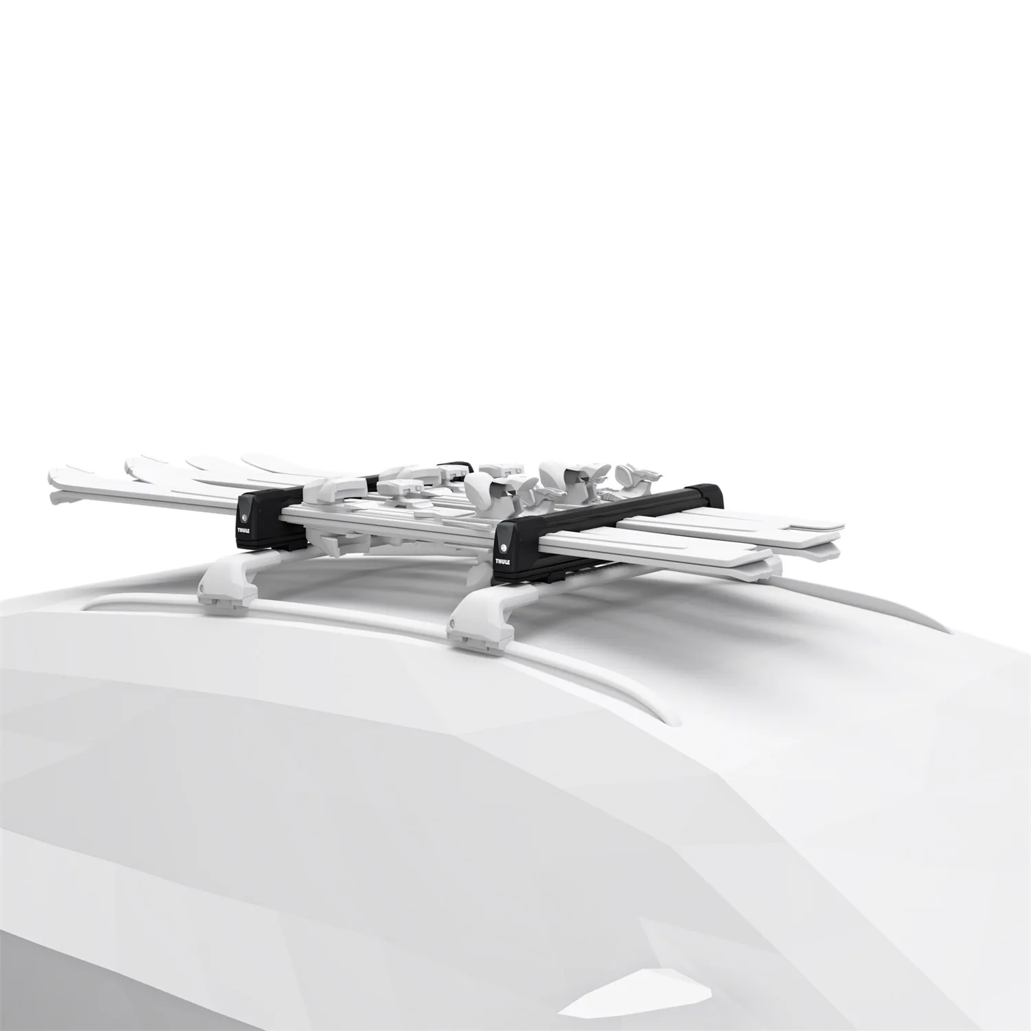 Aerodynamic slide-out rack for convenient loading and unloading of skis and snowboards.