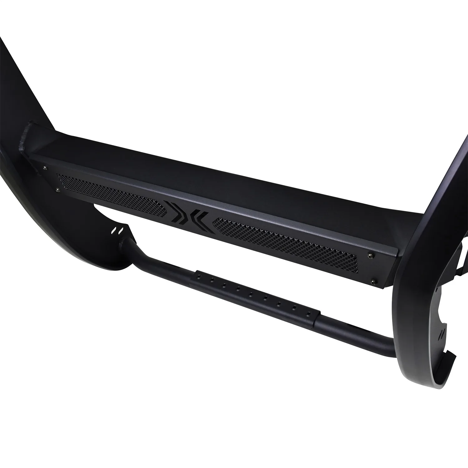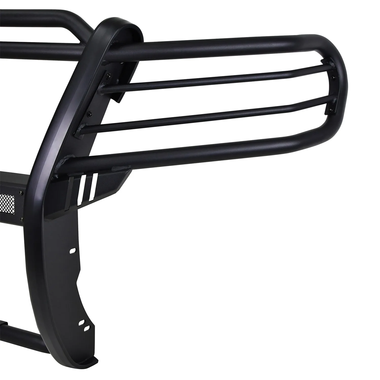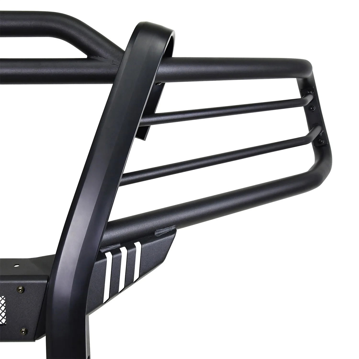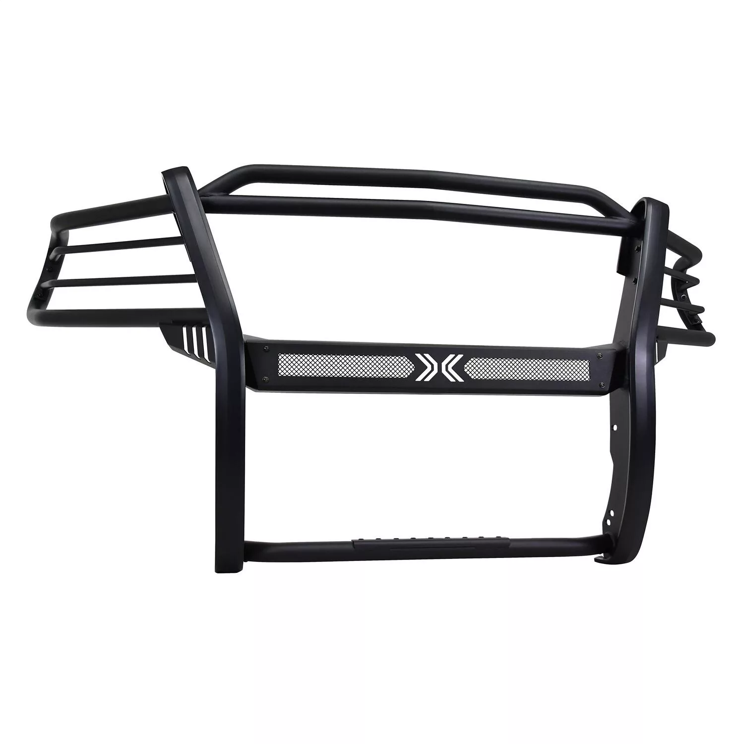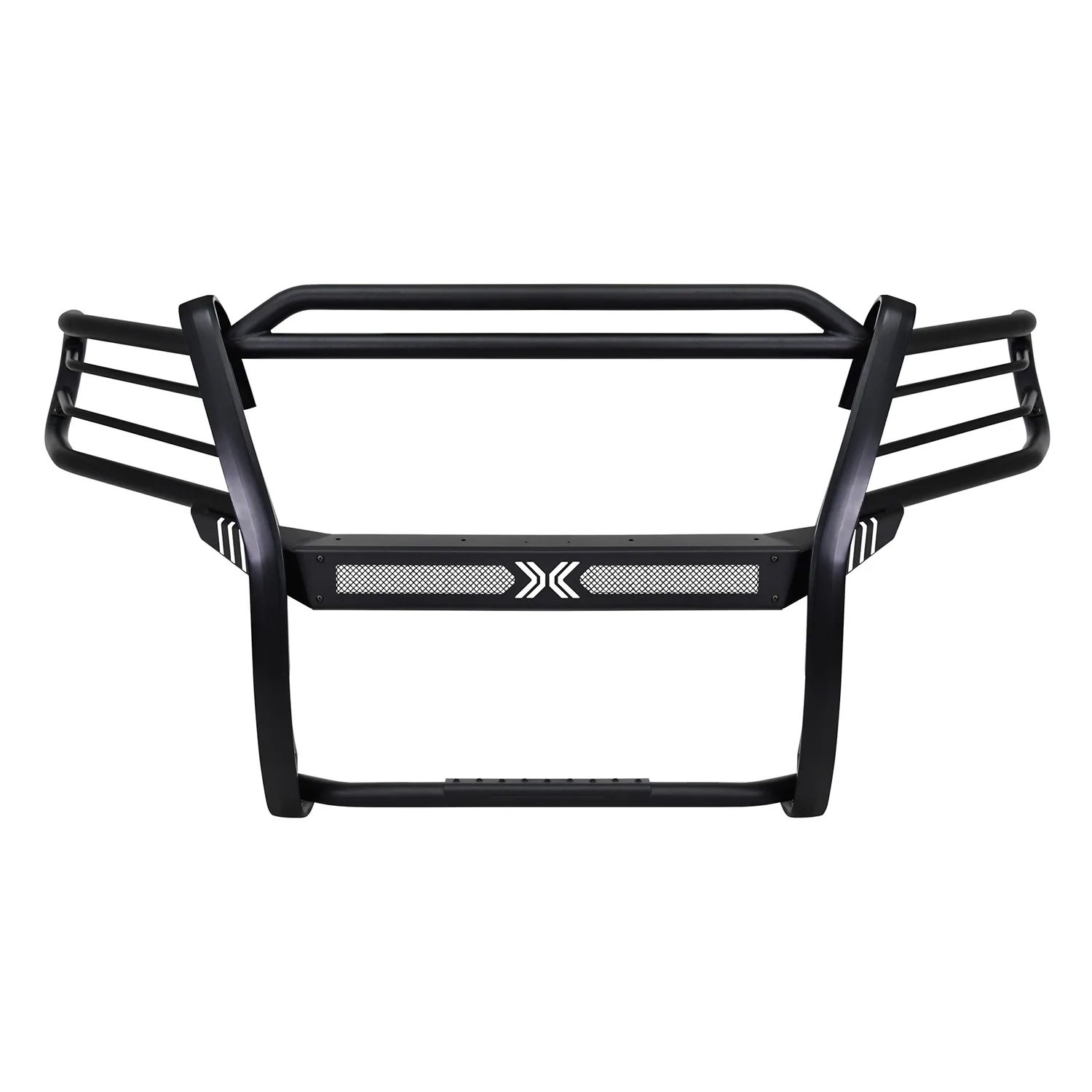 Westins Sportsman X Grille Guard effectively combines aggressive styling with heavy duty front end protection. Engineered to provide both great looks and performance, Sportsman Xs unique design compliments todays larger grille designs, and is available to fit most full and mid size truck applications. Sportsman X has an optional detachable mesh panel (sold separately) which is specifically designed to fit the opening in the center section of Sportsman X Grille Guard, or can be removed to accommodate the flush mounted 26in. dual row LED light bar (sold separately). A smaller removable mesh panel designed for the factory sensor location opening is included as standard with Sportsman X. For specific Chevy and Dodge/RAM applications a Sportsman X Sensor Kit (sold separately) is available. An exterior step plate is located on the 1-5/8in. bottom tube to provide easy access to the engine compartment. Built with heavy duty 2-1/4in. upright rubber strips and 1- 5/8in. outer tubes, Sportsman X Grille Guard is designed to provide protection and style for years to come.