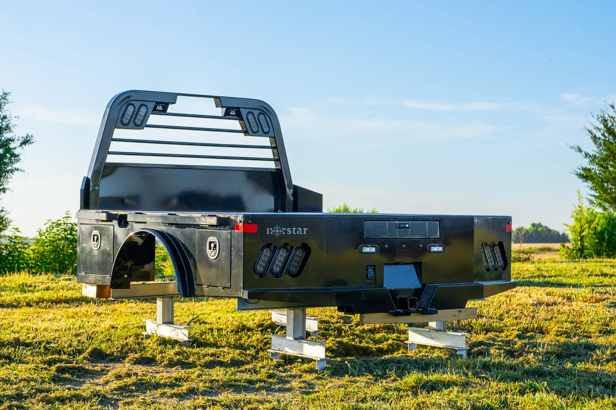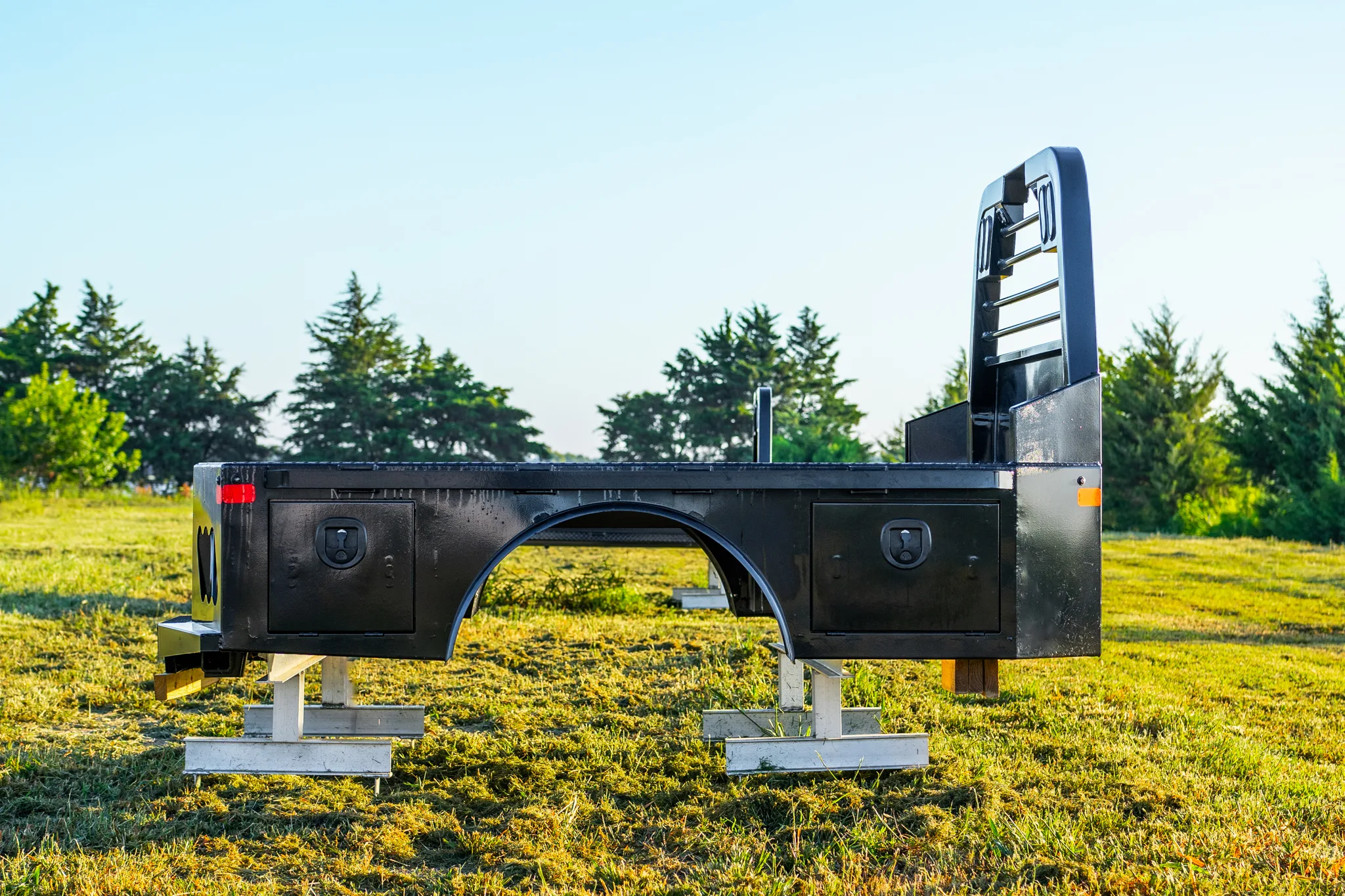 Built for serious hauling, all-day productivity, and designed with durability and versatility in mind, the ST comes equipped with four toolboxes, integrated rub rails for added cargo control, and optional features like bale spikes and a gooseneck trough to meet the demands of your specific workload. This bed is the perfect fit for any single or dual wheeled work truck and can keep up with your daily grind.