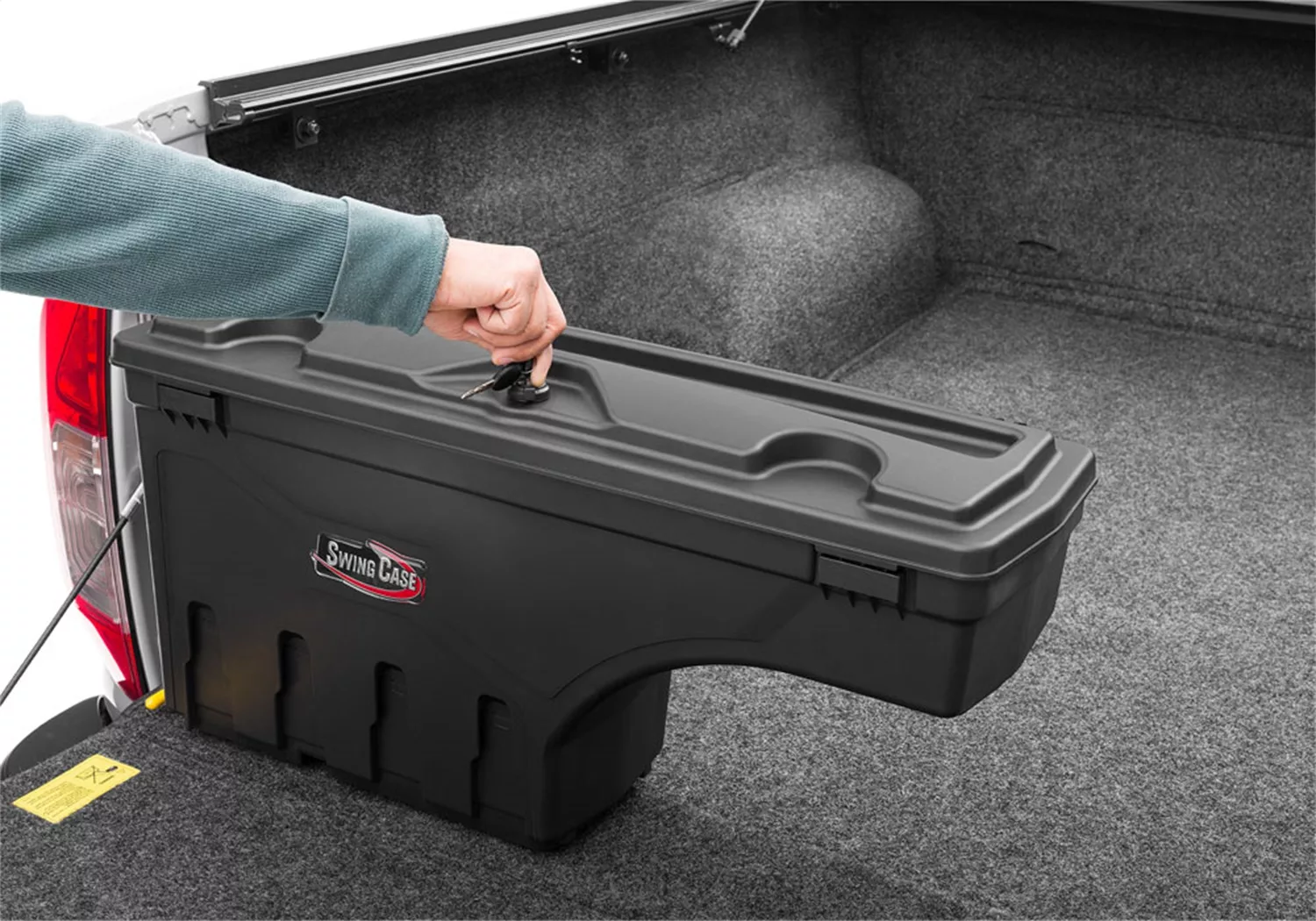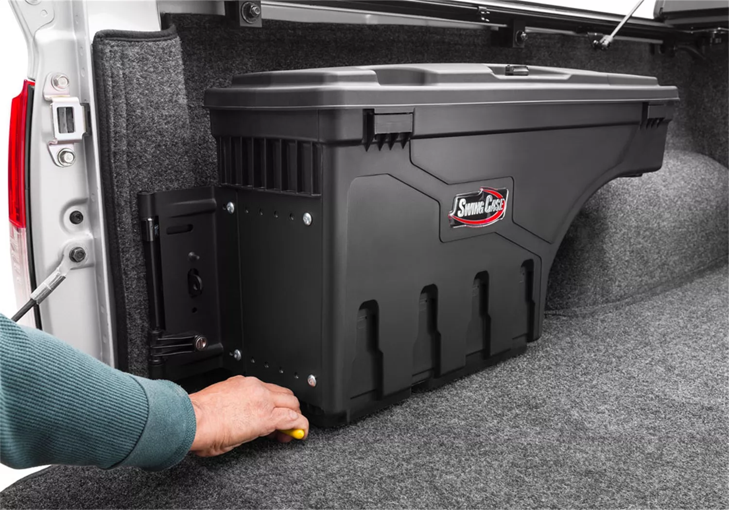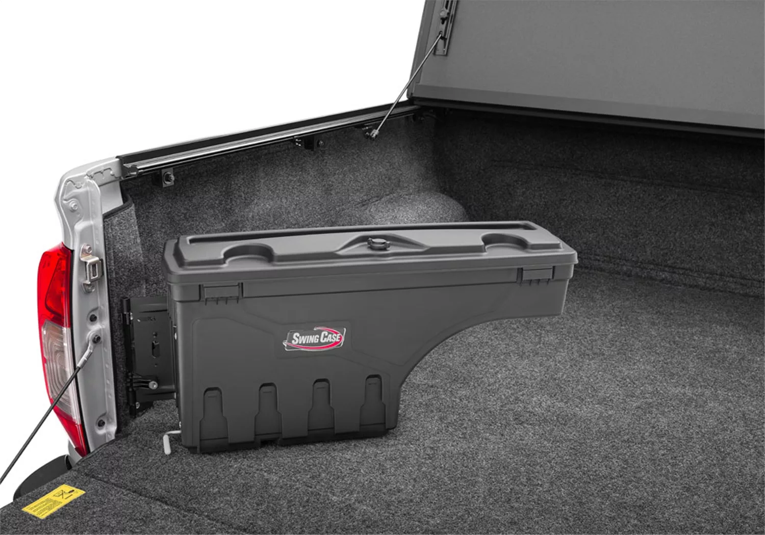 SwingCase by UnderCover is the most innovative and versatile truck storage box ever made. Built to last from lightweight, high-impact ABS plastic; the tough, weatherproof, SwingCase is custom fitted for your truck. The SwingCase is affordable, too. In fact, you can purchase two SwingCases for less than the price of an old-fashioned truck bed box… and save a lot of space, too. Best of all, the SwingCase provides storage that is always within reach without sacrificing the use of your truck bed. Just simply pull the release lever and your gear swings out to you, no more reaching over or climbing into your truck bed. For work or play, go with SwingCase today.