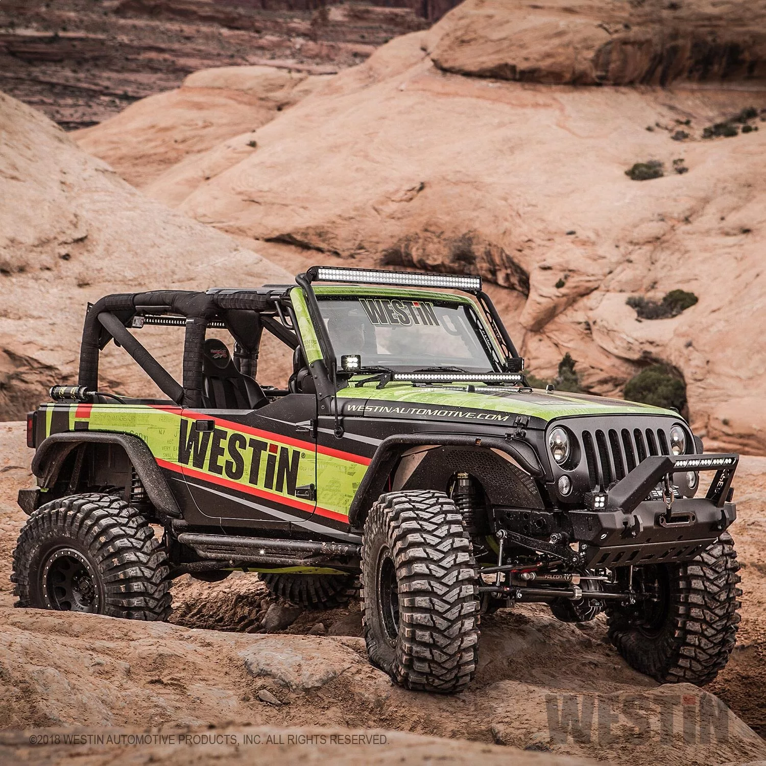 Westin Triple Tube Rock Rails are frame mounted Jeep Wrangler side steps that protect vehicle rocker panels. Made of three 16 gauge welded tube construction. Full-length step area features louvered styling and a texture coated finish for slip resistance and easy cleaning. A welded plate that features a laser cut Westin logo is welded between…