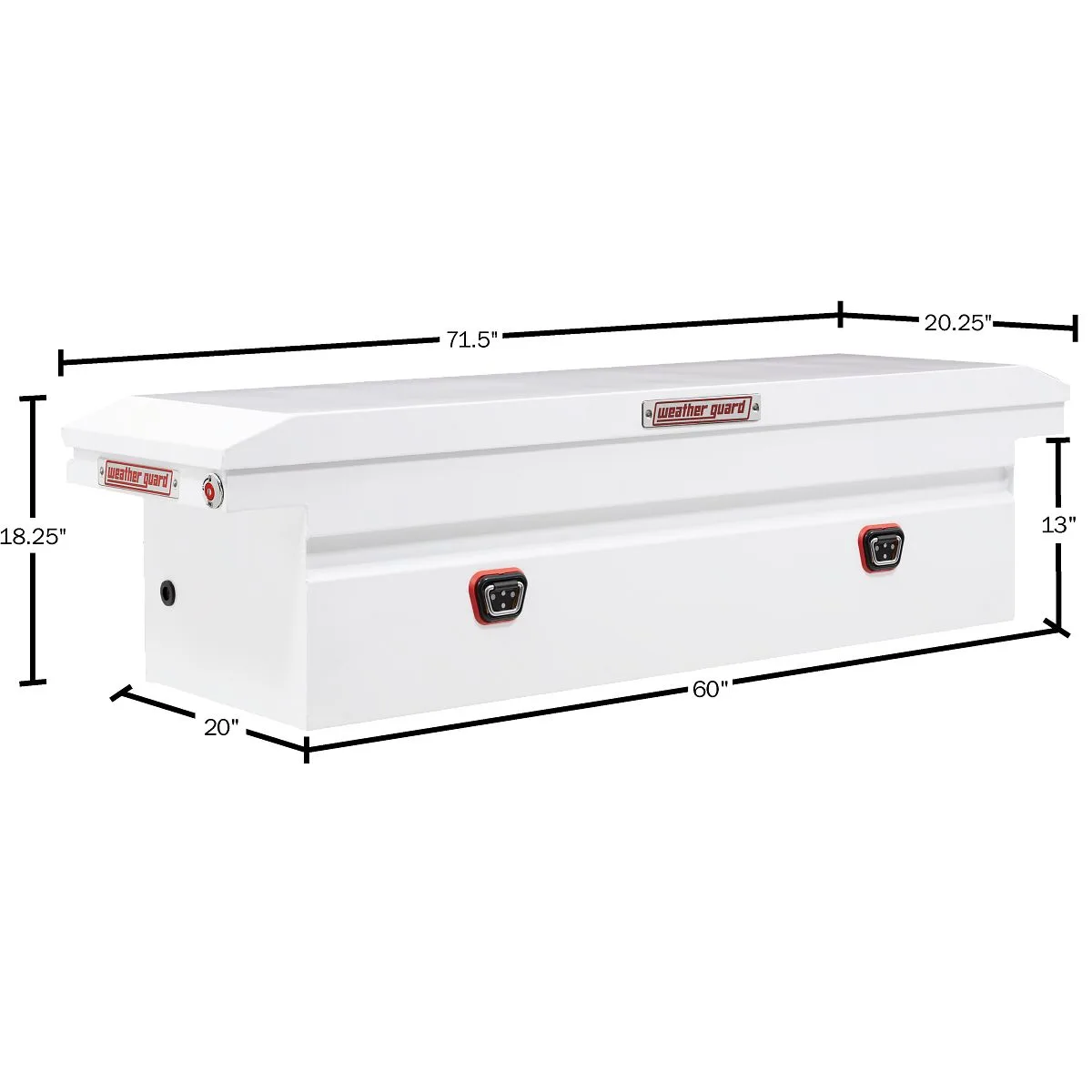 The new Weather Guard 1KEY Ultralock is the next advancement in truck box security. The Ultralock combines one key simplicity with detent technology, providing quick visual assurance your gear is locked down and protected. The box features the new push button lock that can code multiple boxes on a truck or entire fleet to the same key. The Model 120-3-04 is a low profile steel truck toolbox and has a storage capacity of 11.0 cu ft. It is coated with a White ARMOR TUF® Powder Coat finish ensuring years of dependability.