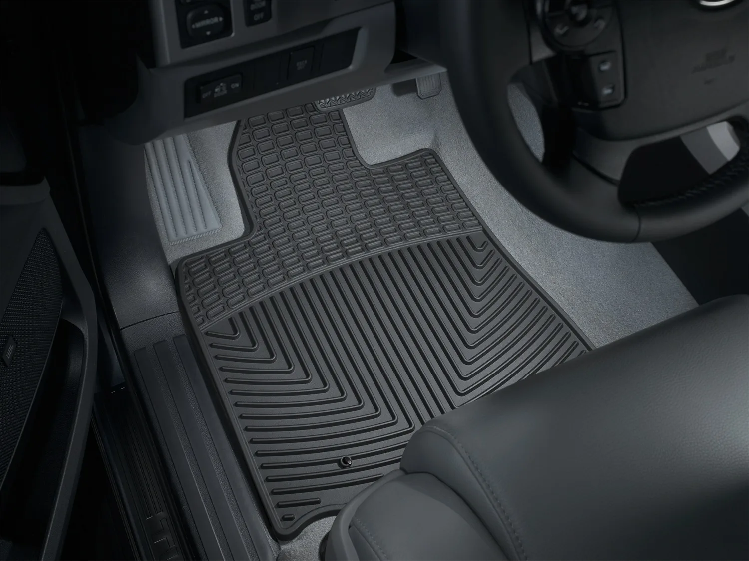 The WeatherTech All-Weather Floor Mats have deeply sculpted channels designed to trap water, road salt, mud and sand. They wont curl, crack or harden in sub-zero weather. Our All-Weather Floor Mats also have anti-skid ridges to prevent shifting in your vehicle and come with a protective, non-stick finish to make cleanup quick and easy. Choose from Black, Tan or Grey to complement virtually any interior color. Includes a 10 year warranty. The WeatherTech All-Weather Floor Mats have deeply sculpted channels designed to trap water, road salt, mud and sand. They won’t curl, crack or harden in sub-zero weather. Our All-Weather Floor Mats also have anti-skid ridges to prevent shifting in your vehicle and come with a protective, non-stick finish to make cleanup quick and easy. The All-Weather Floor Mats are made using advanced rubber-like, Thermoplastic Elastomer (TPE) compound making it both soft and durable.