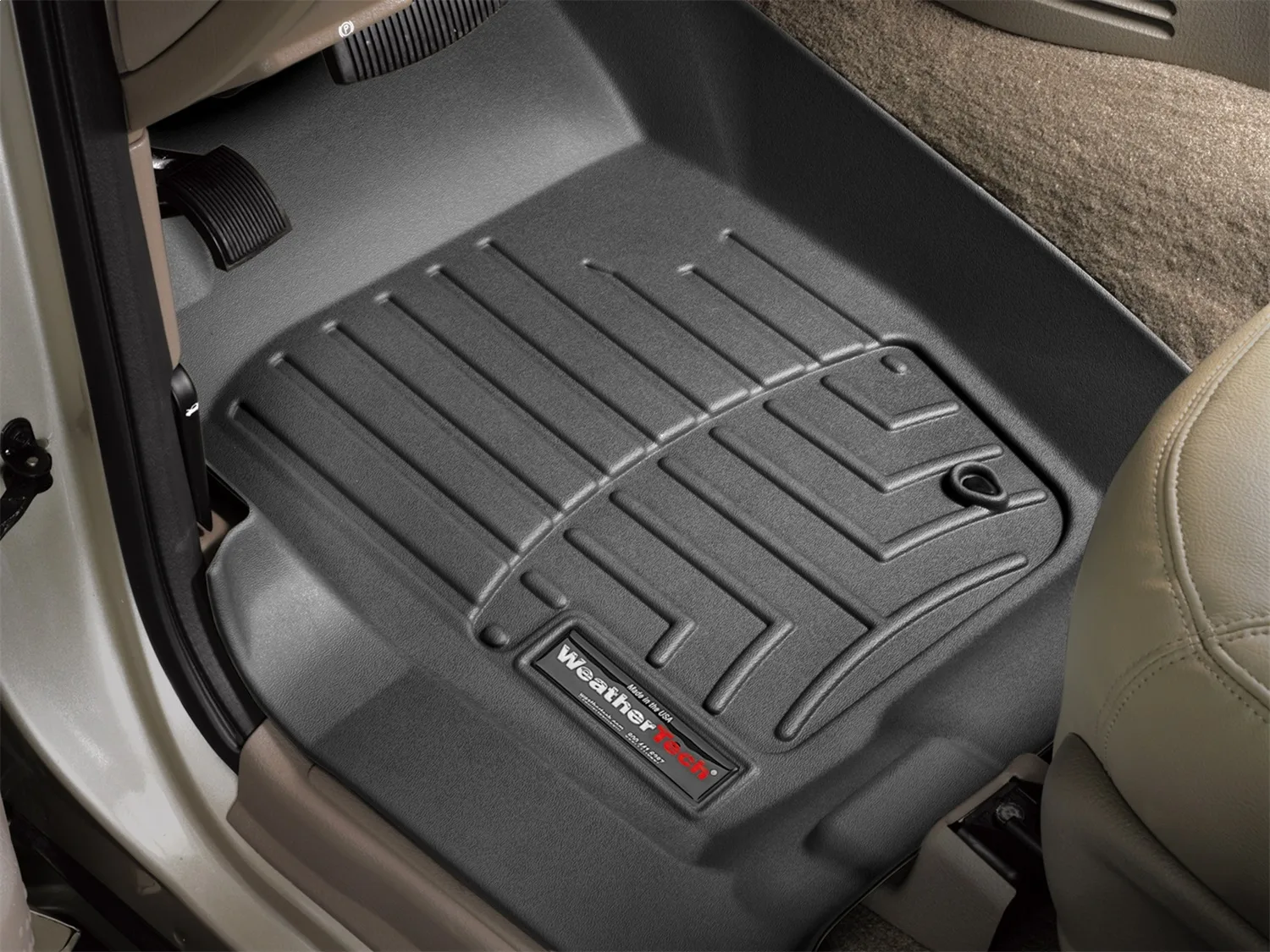The WeatherTech FloorLiner DigitalFit accurately and completely lines the interior carpet giving absolute interior protection. Digital laser measurements of interior surfaces offer a consistently perfect fit. A HighDensity TriExtruded (HDTE) material allows for a rigid core for strength while offering surface friction to the carpet, as well as tactile feel to the surface. Advanced surfacing creates channels that carry fluids and debris to a lower reservoir with further channeling to help minimize fluid movement while driving. Once fluids become trapped in the reservoir, away from shoes and clothing, they are easily removed from the WeatherTech FloorLiner DigitalFit over the door sill. No muss-no fuss. The WeatherTech FloorLiner DigitalFit accurately and completely lines the interior carpet giving absolute interior protection. Digital laser measurements of interior surfaces offer a consistently perfect fit. A patent pending HighDensity TriExtruded (HDTE) material allows for a rigid core for strength while of fering surface friction to the carpet, as well as tactile feel to the surface. Advanced surfacing creates channels that carry fluids and debris to a lower reservoir with further channeling to help minimize fluid movement while driving. Once fluids become trapped in the reservoir, away from shoes and clothing, they are easily removed from the WeatherTech FloorLiner DigitalFit over the door sill. No muss-no fuss.
