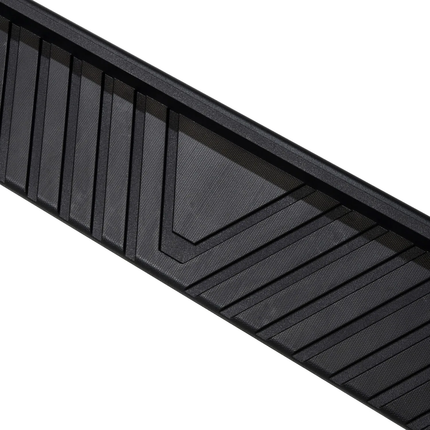 AT6 Running Boards are designed for full size trucks and feature a 5-inch wide step area with integrated indented pads for solid footing. Built with clean, rounded end caps and bracket covers for an OEM?style appearance, they offer a refined yet rugged look. Two finish options are available, textured black powder-coated extruded aluminum, backed by a 3?year limited warranty, or bright finish polished stainless steel with a limited lifetime warranty. These boards are lightweight but structurally durable, designed to minimize added weight with the strength for the toughest jobs. The footboard and pads are ergonomically placed for comfort and maximum traction. Bracket covers are used to conceal mounting hardware and help preserve that clean factory look. The AT6 models are vehicle-specific fit and include hardware to bolt on the boards with no drilling required. Installation takes about 1.5hrs, and depending on the height of the truck, should not require a lift. The aluminum construction offers excellent weather resistance with proper care and maintenance, but for harsh road conditions or regions where salt is used on the roadways during winter, choose stainless steel. Replace your factory running boards with AT6. They are a sleek, solidly built option with stylish design, ample stepping area, and finish choices for a custom look.