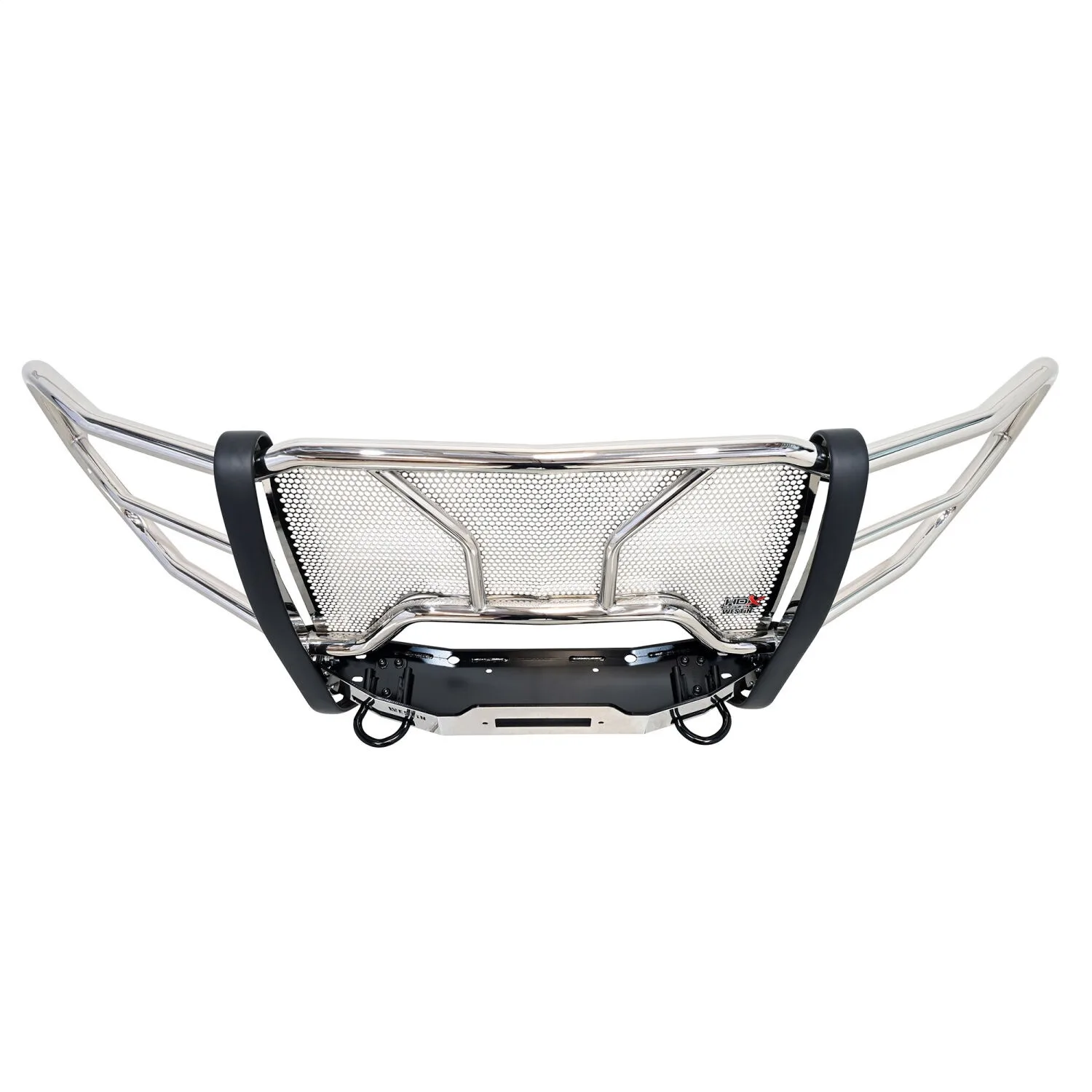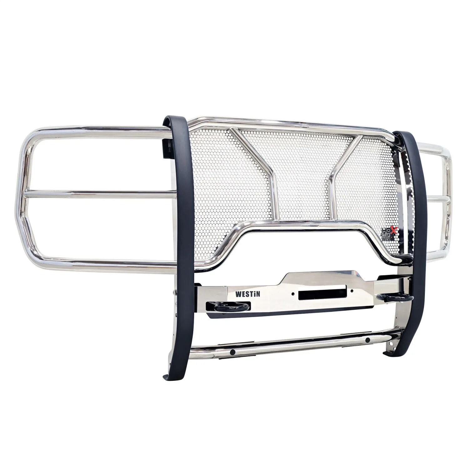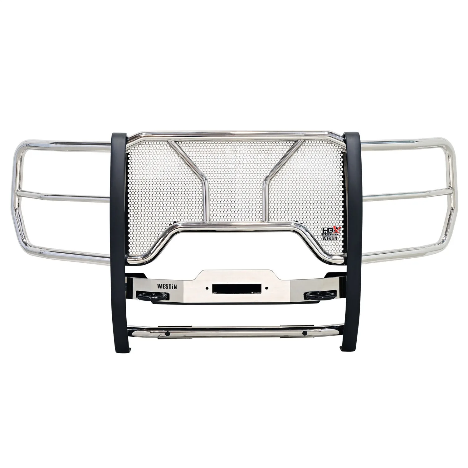 Westin’s HDX Winch Mount Grille Guard is extreme truck gear for the enthusiast that seeks additional functionality for their truck. It encompasses all of the features of an HDX Grille Guard with the additional capability to hold a winch up to 10.25 inches tall with a rating of up to 12,000 lbs. Winch trays are tested and capability confirmed to a minimum straight line pull of 16,500 lbs. HDX Winch Mount Grille Guards are available in 304 stainless steel backed by a lifetime warranty and black powder coat steel backed by a 3 year warranty.