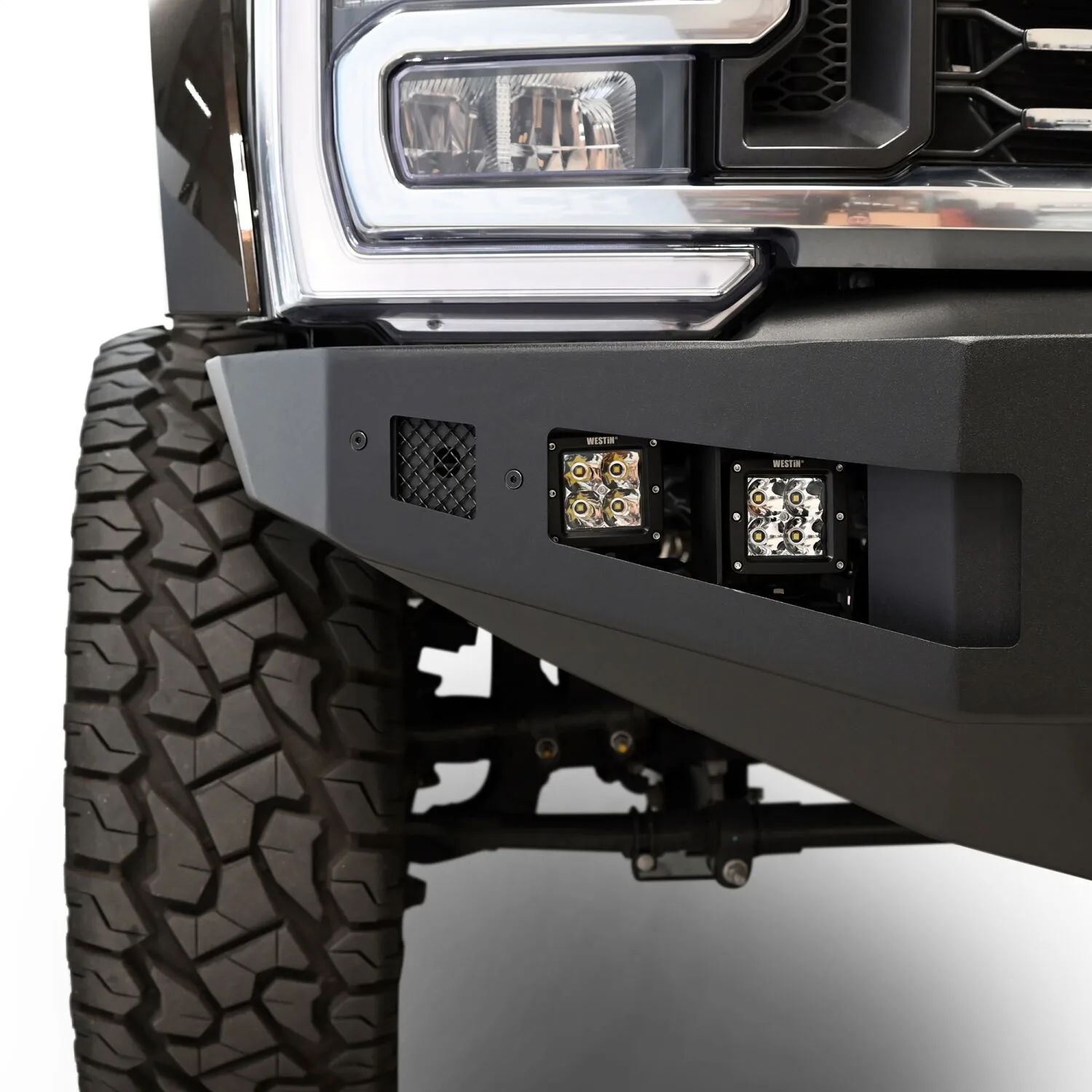 The Pro-Series Front Bumper from Westin is an attractive, heavy duty, “winch capable” upgrade which retains the OE factory features while upgrading both looks and functionality. Built for adventure, this bumper is ready for anything standing in its way. The Pro-Series was engineered to improve both approach angles and ground clearance for enhanced off-road capabilities. Constructed with a 10 gauge steel bumper shell the Pro-Series is designed for maximum strength and durability. Utilizing a heavy duty 1/4in. steel center section capable of accomodating most any 12k lb. winch, and added welded mounting points for recovery, this bumper takes you off the highway with confidence. Engineered to fit most double-row 20in. LED light bars (sold separately) for added safety on those late night excursions. Finished with a durable E-coat and black textured 2-stage treatment and backed by a full 3-year warranty Westin has you covered. Includes all the necessary mounting hardware for a “hassle free installation”. Pro-Series is available for Ford, Chevy, Ram and Toyota applications. Add the matching Pro-Series Rear bumper to complete the look and take your truck to the next level.