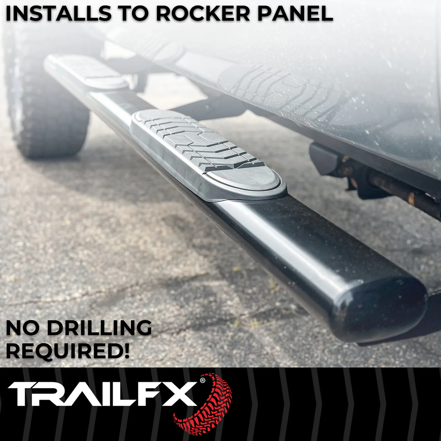Trail FX TFX 5″ Oval Bent Side Bars With Step Pads 5 In Oval Bent Powder Coated Black Steel With Welded End Caps Roc